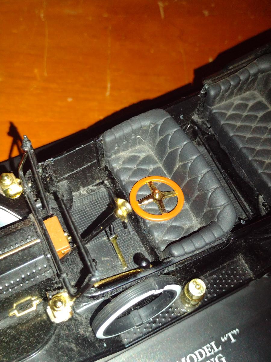 Ford Model 'T' Touring Model on Base- Approx 8" x 3 1/2". Steering wheel and wind screen top support need to be repaired.