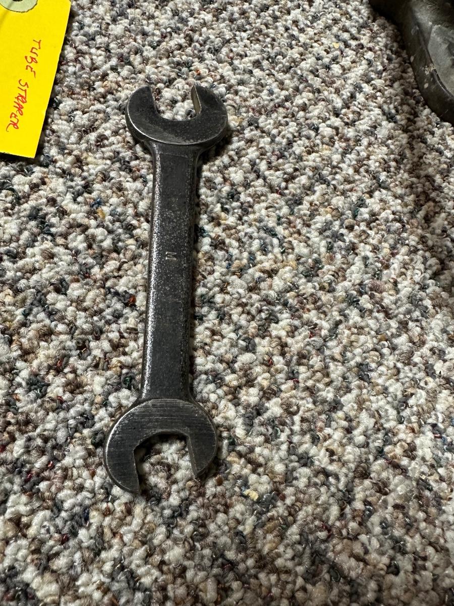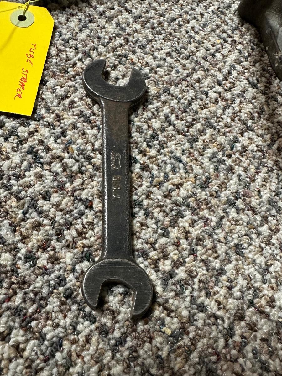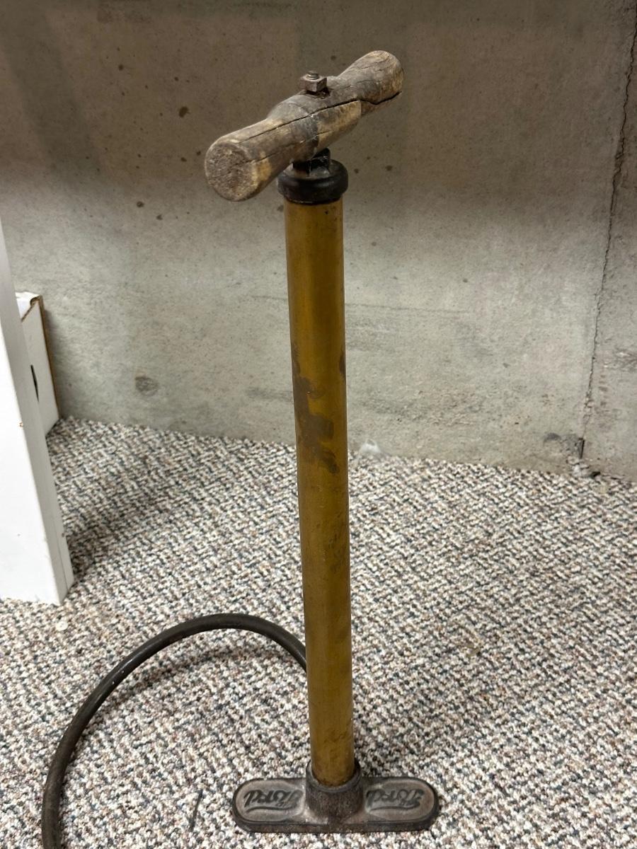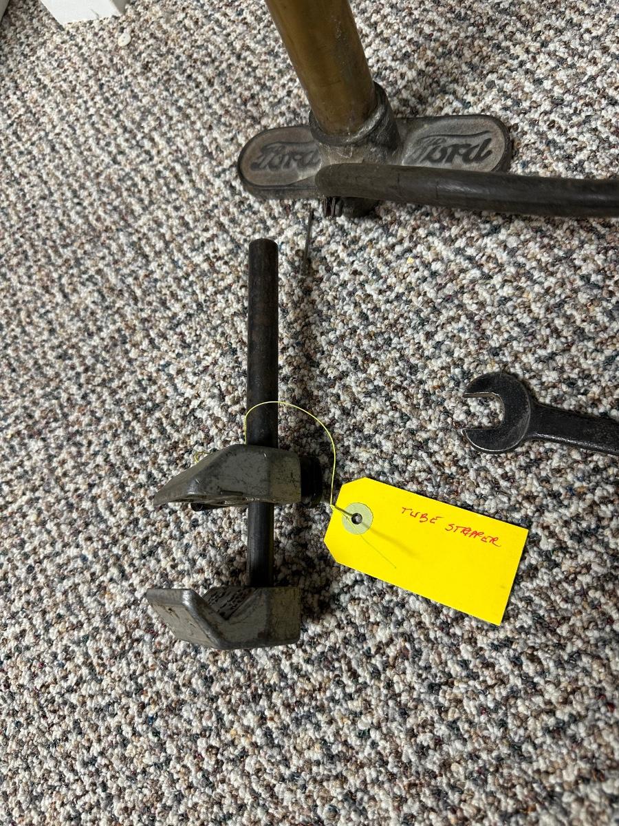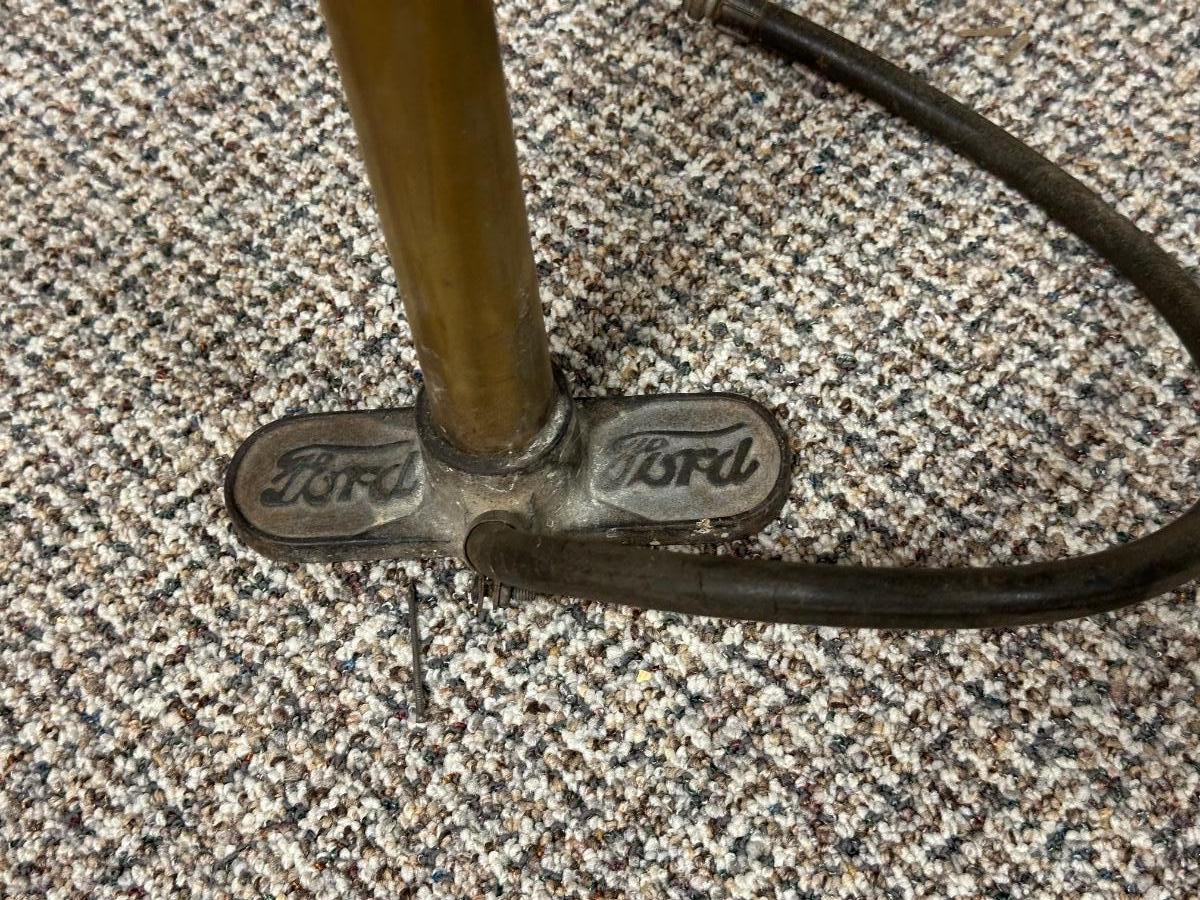 FORD MOTOR CO AIR PUMP AND WRENCH PLUS AN OLD TUBE STRAPPER