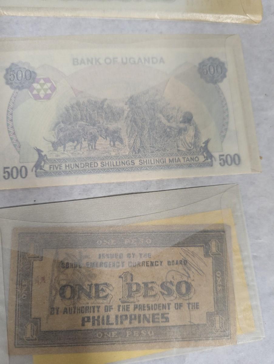 Foreign Banknotes includes WWII Japanese and Philippine Occupation Currency and 1983 Ugandan Shilling Lot V