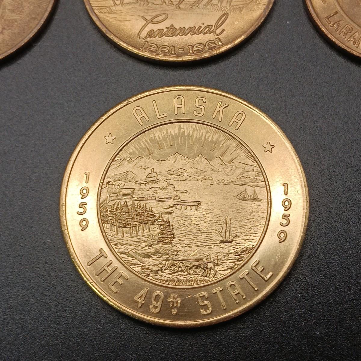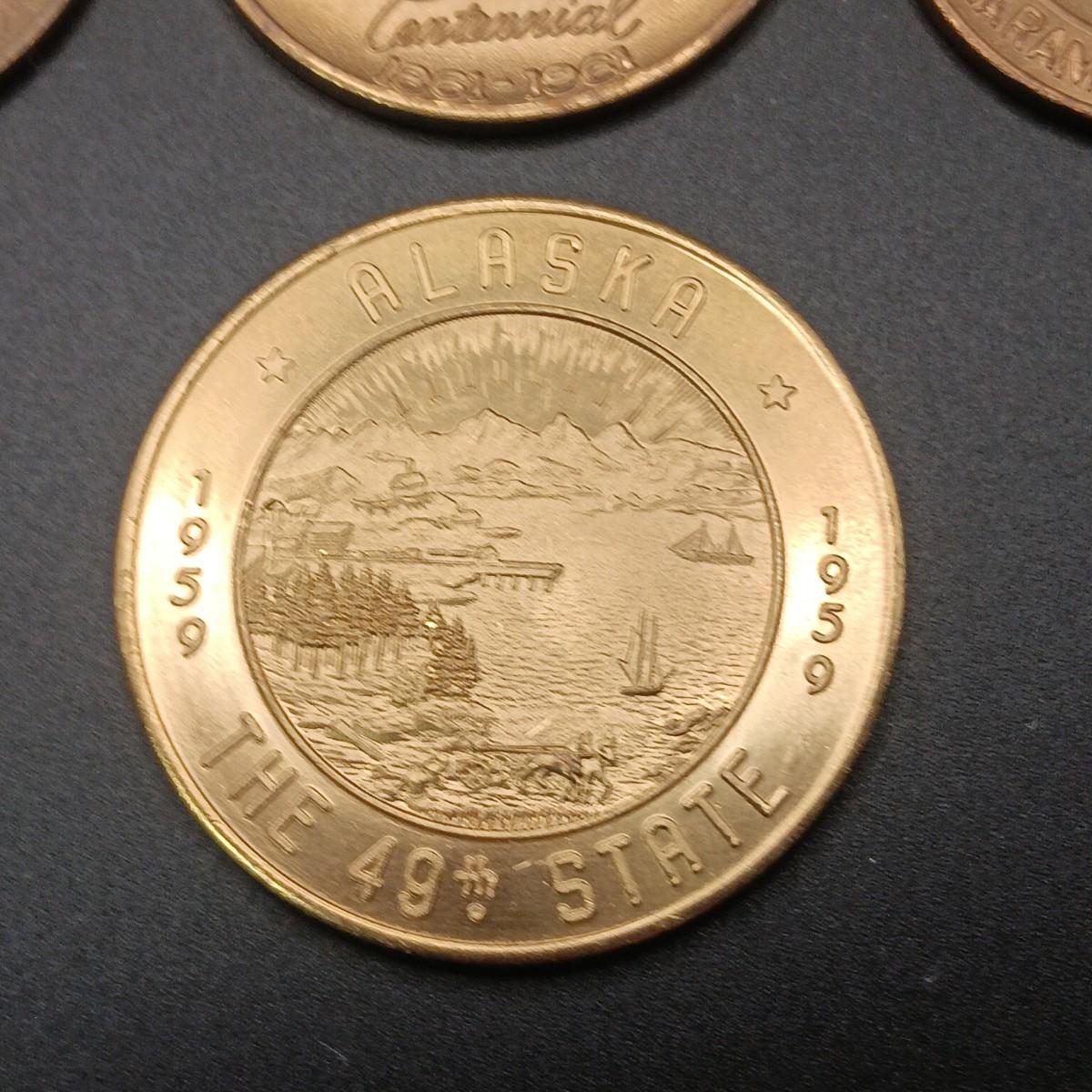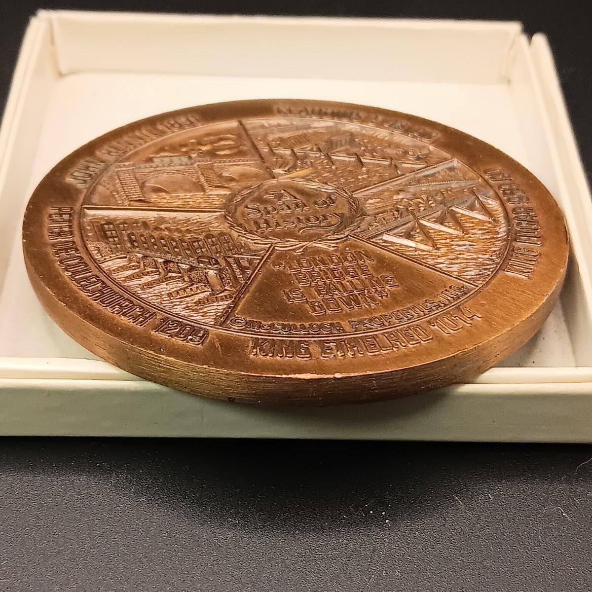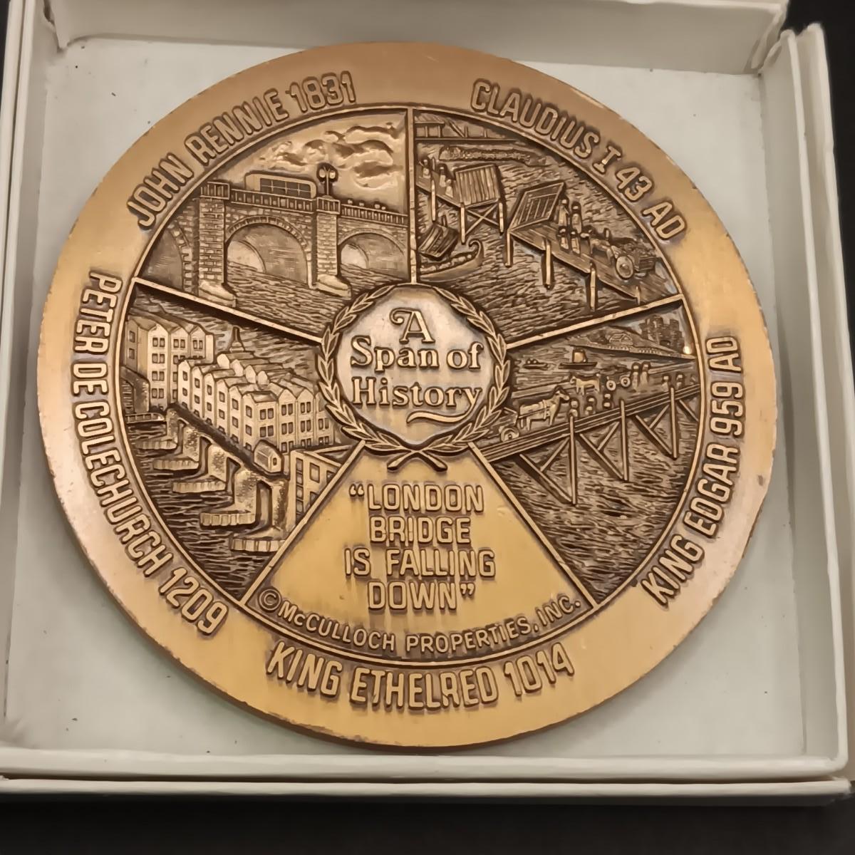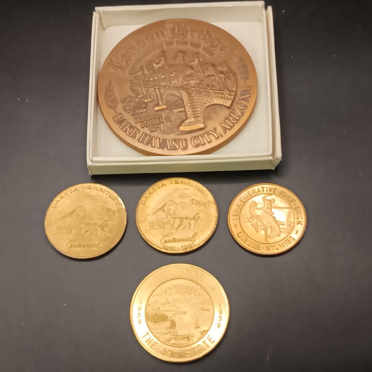 FOREIGN COINS, STATE COMMEMORATIVE MEDALLIONS AND LARGE BRASS LONDON BRIDGE SOUVENIR