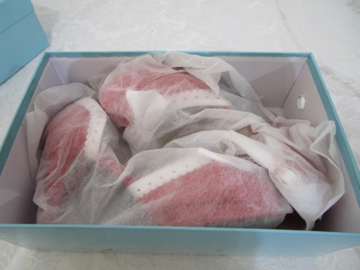 Red & White, look narrow (2-3/4" across at the widest), See pictures
