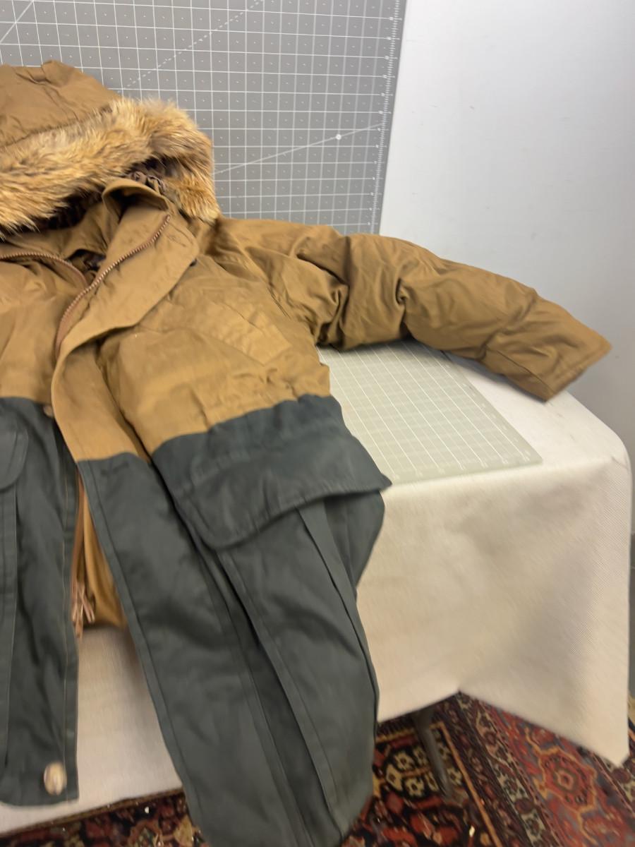 Men's Fur Lined Hood. Size Large. 80% Down With Real Coyote Fur. Good Used. Condition.