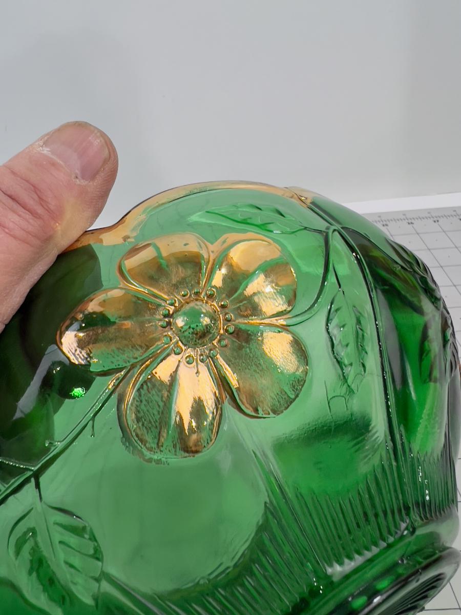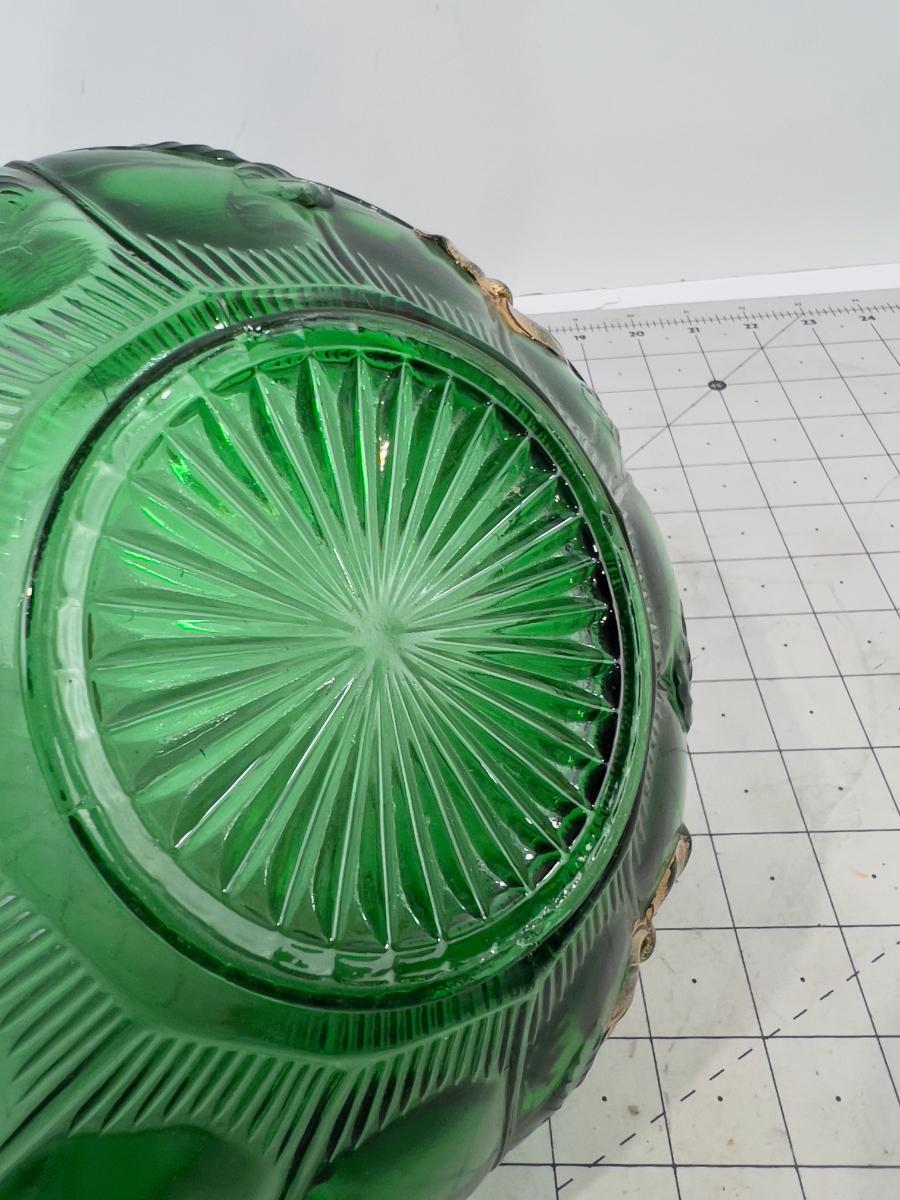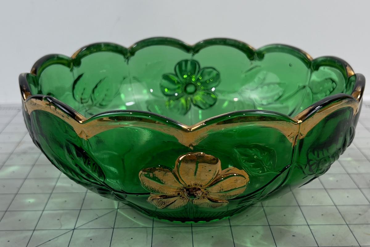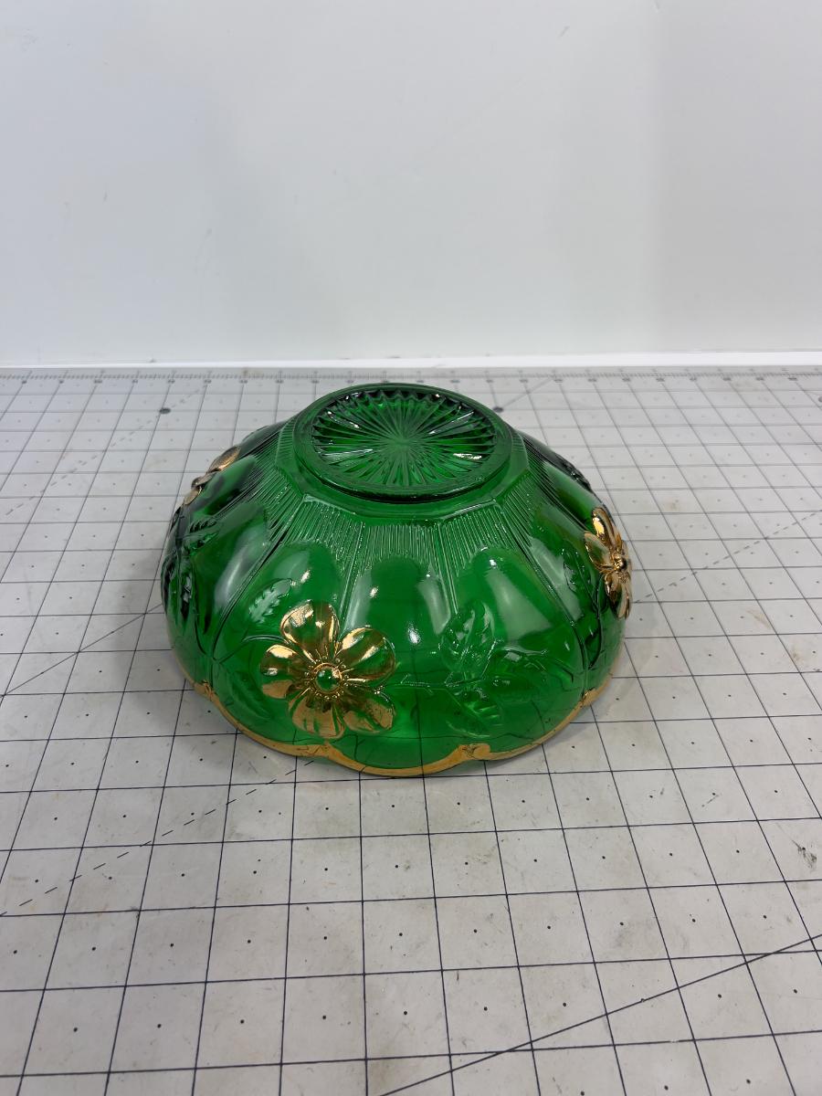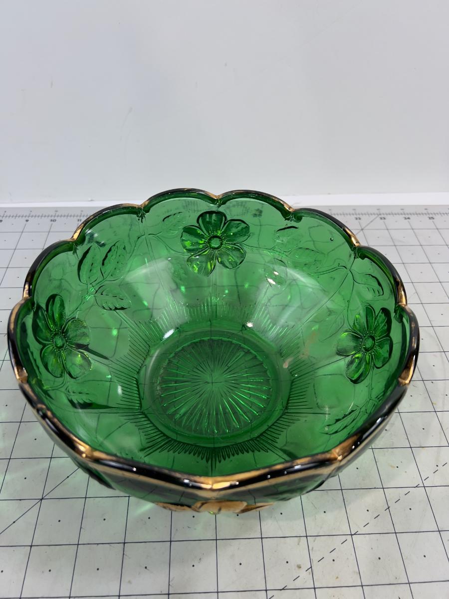 Forest Green GOLD Rimmed BOWL, Pressed Glass