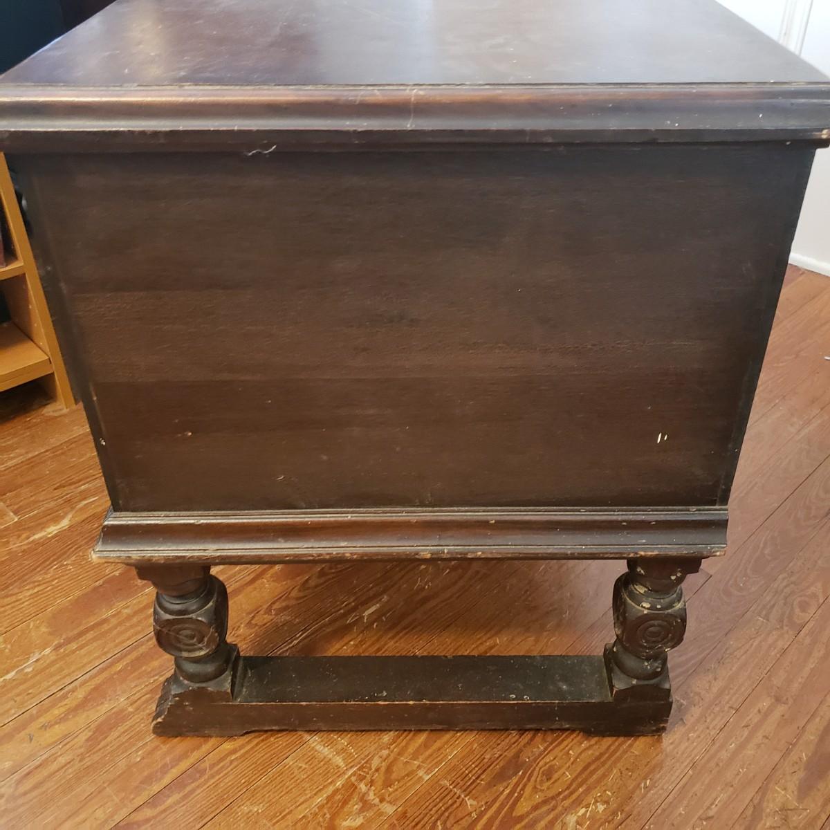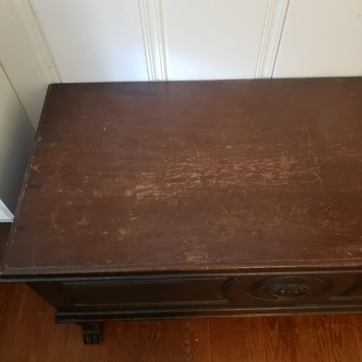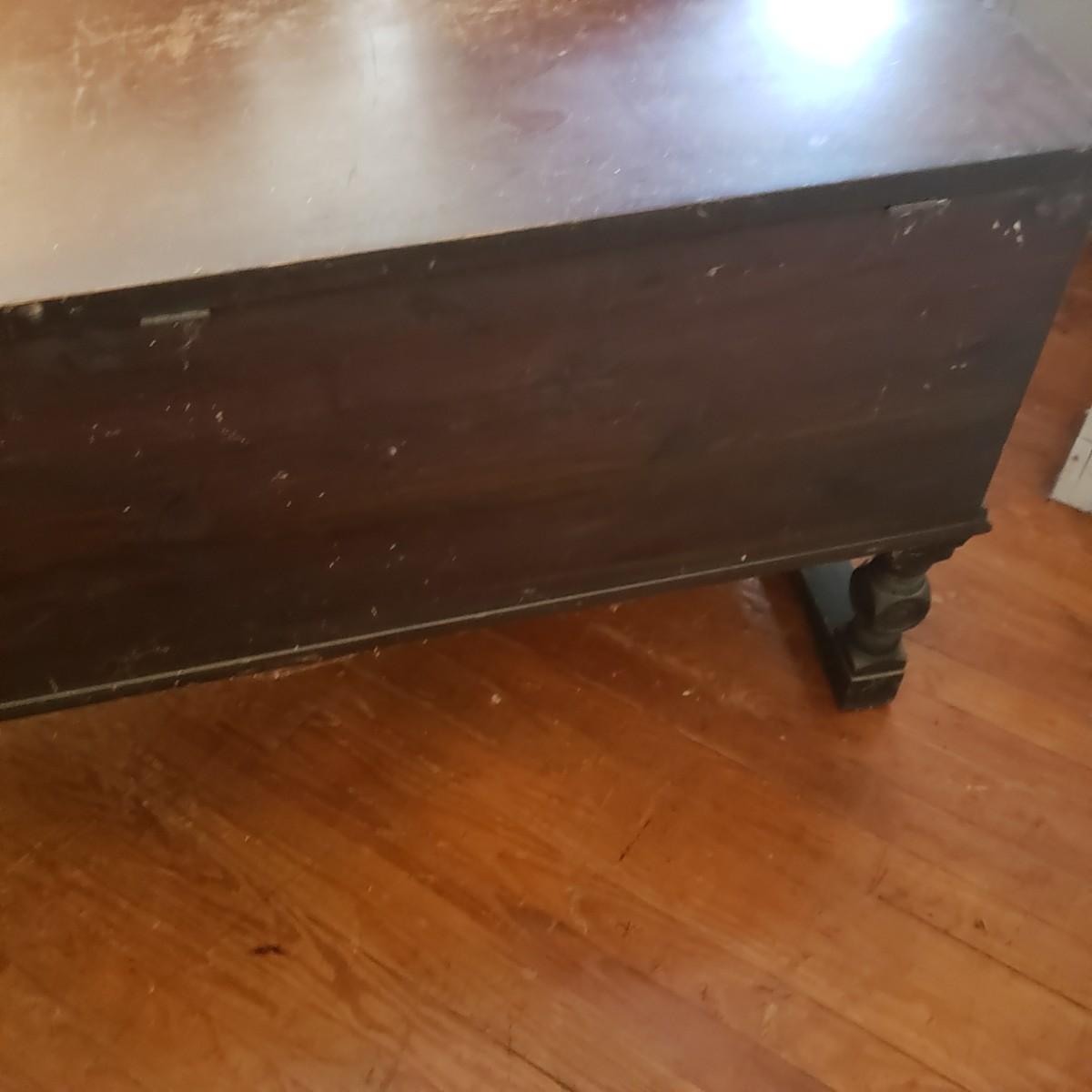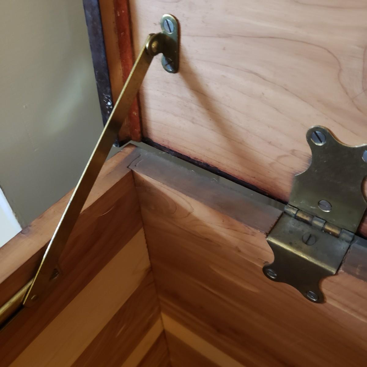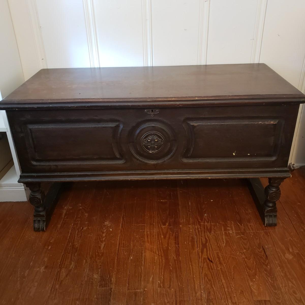 This is a Forest Park Cedar Chest from Illinois. The chest measures 48" x 21" x 26"H. The paper guarantee has come off the staples, see picture. There is a lock, but no key. There is wear on the top and sides, yet that is cosmetic. This would be perfect for the six quilts in another lot in this auction!