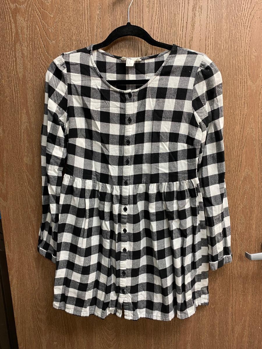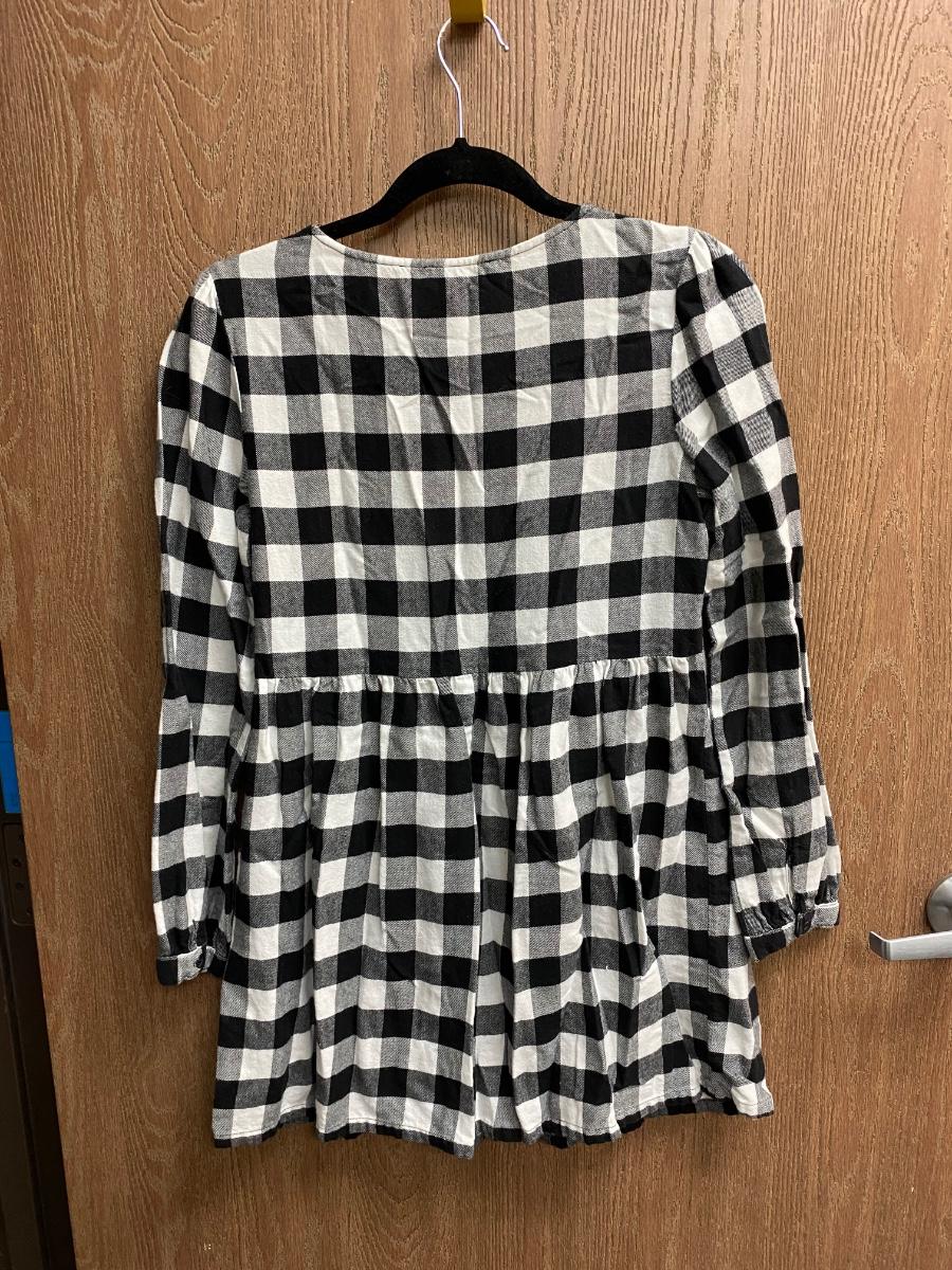Forever 21 Black & White Gingham Plaid Tunic Blouse Button Front Medium
