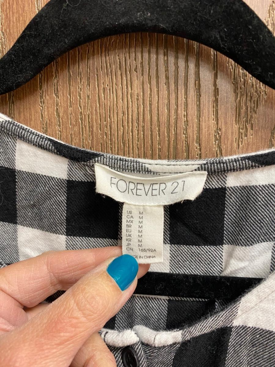 Forever 21 black & white gingham tunic blouse. 3/4 sleeve. Size medium. Good condition.