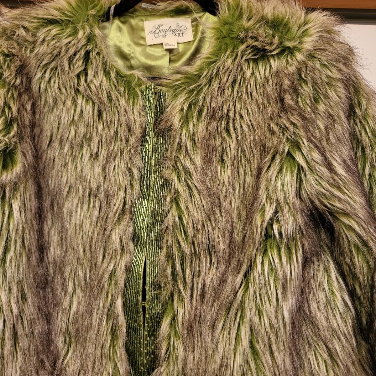 Forever 21 Boutique XXI Green Fuzzy Coat Size Medium