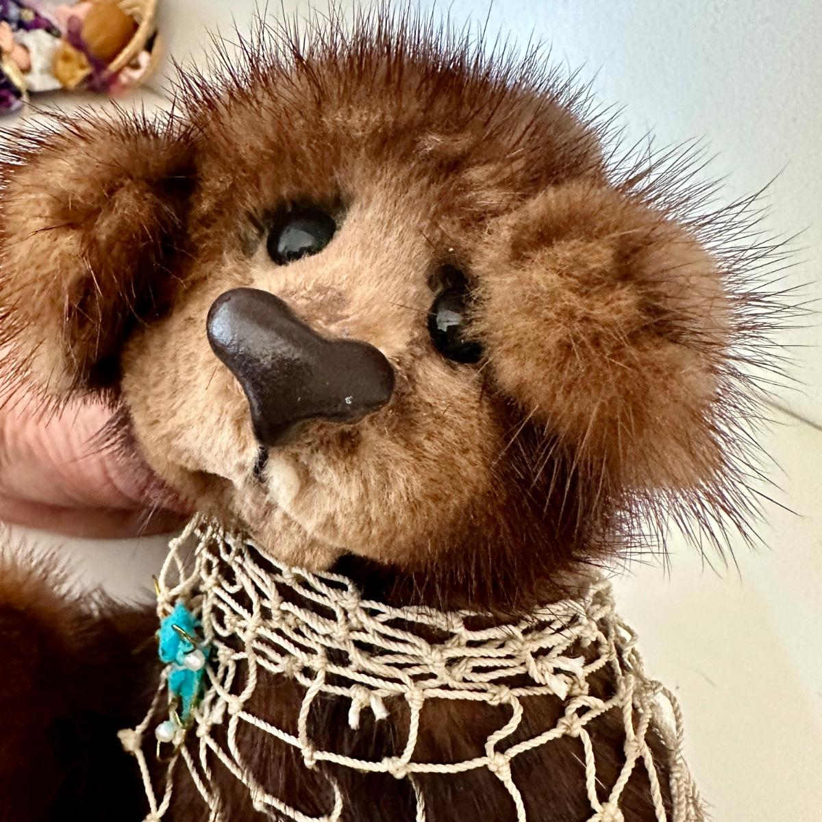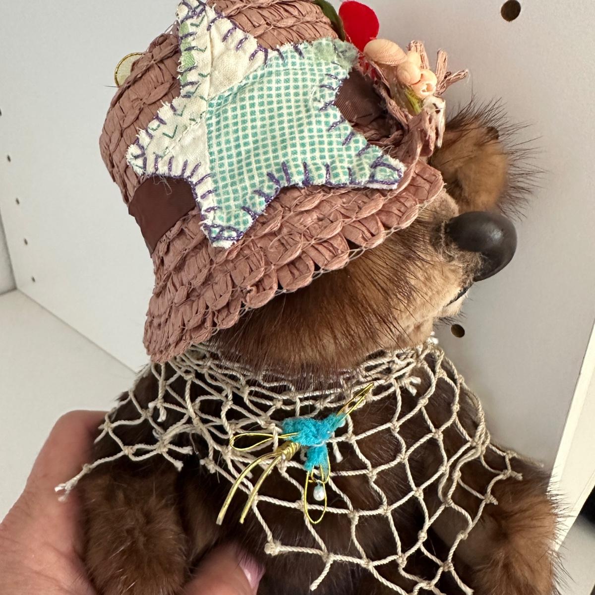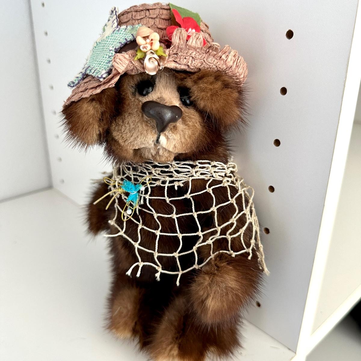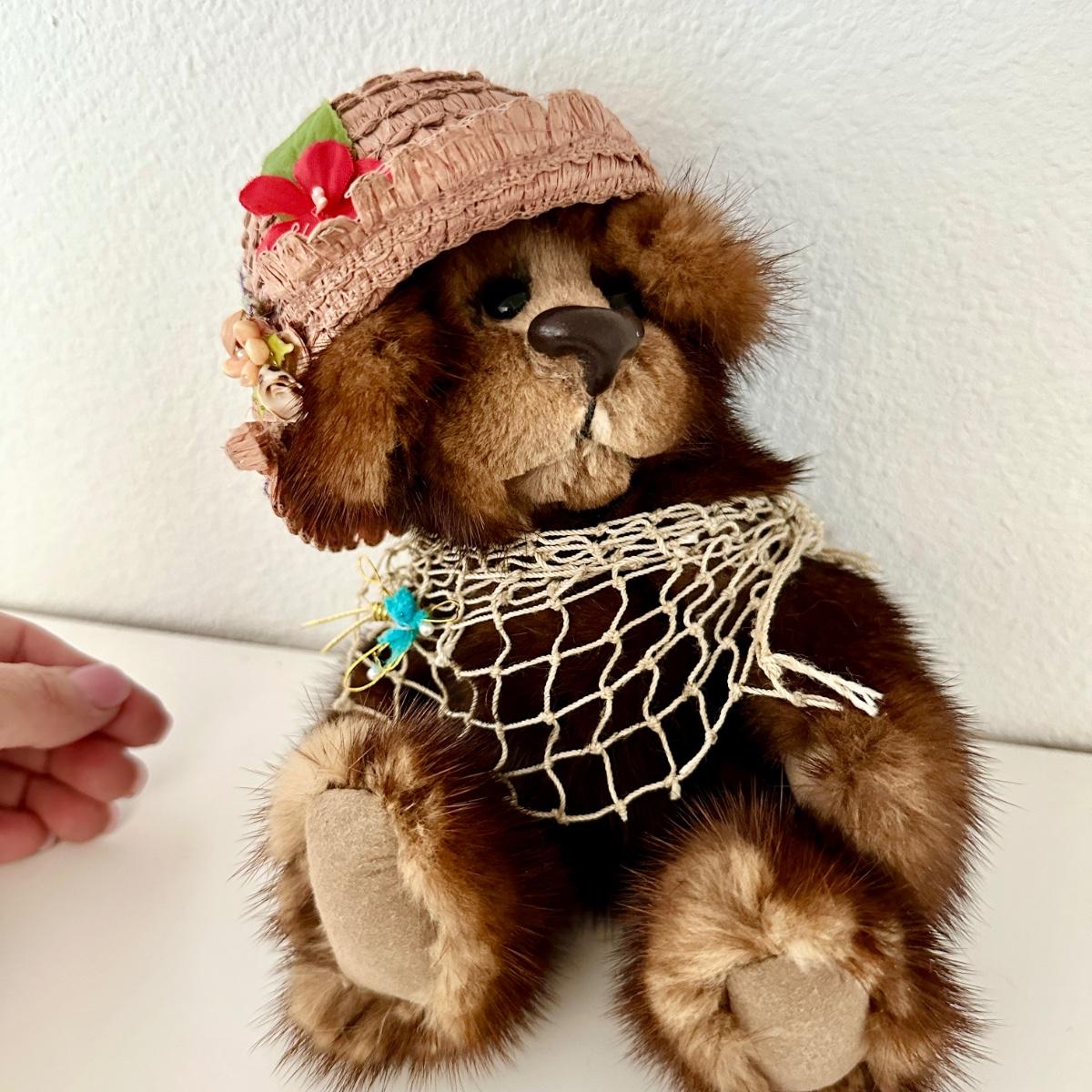 *The Bee Keeper by Forever Oregon Bears. Body is mink fur with ultrasuade paws. The Bear is fully jointed and wears a brown hat. 8 inches tall