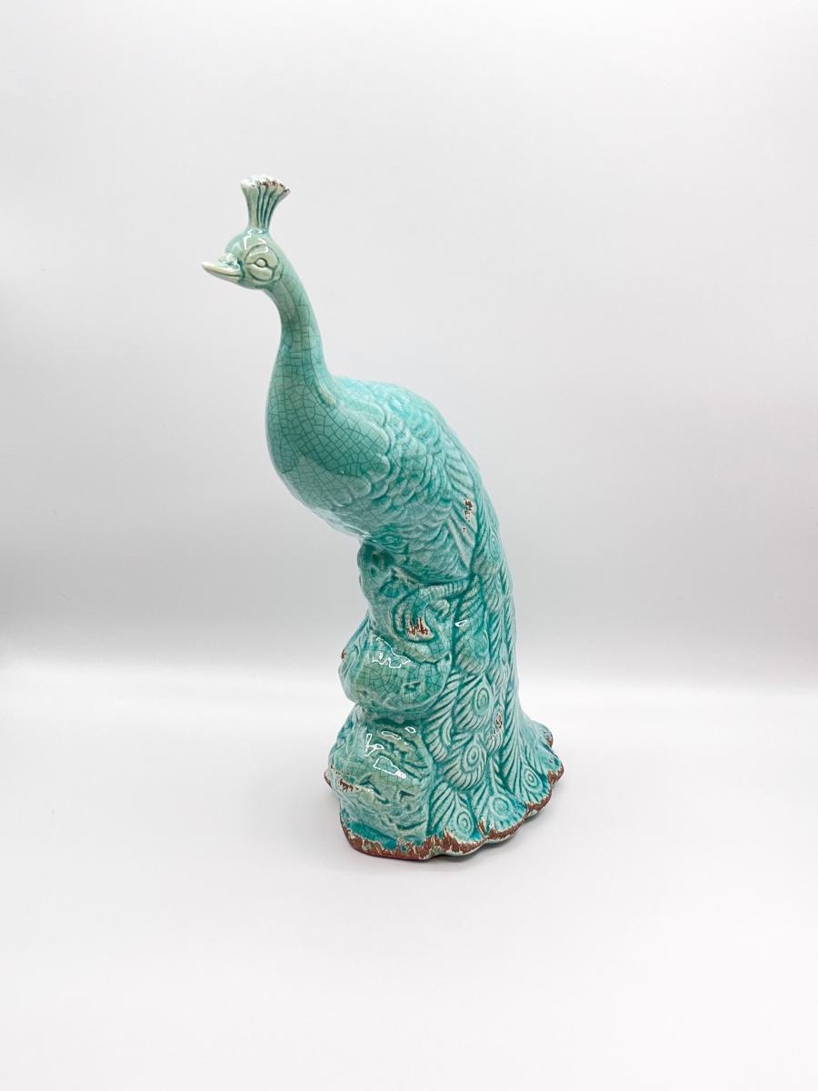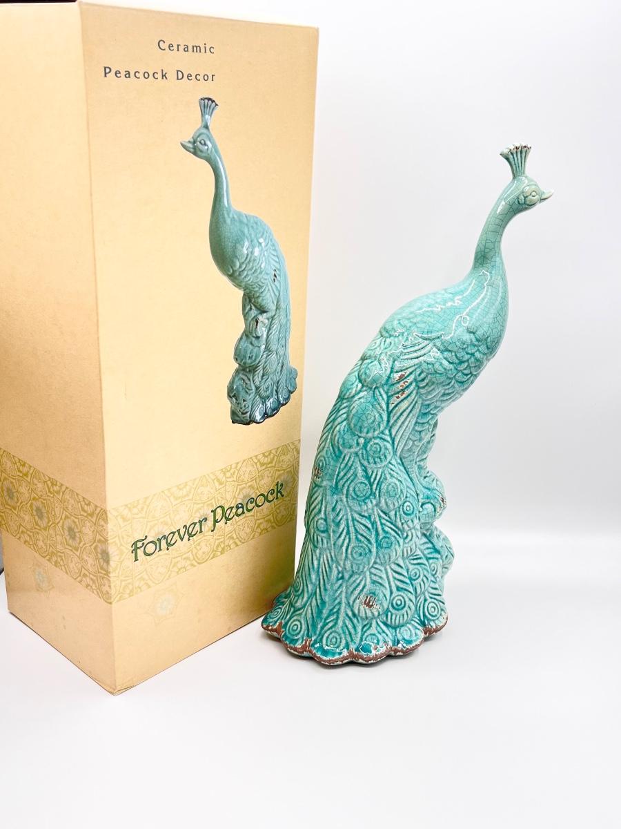 Forever Peacock ~ 15” Tall Ceramic Peacock Statue