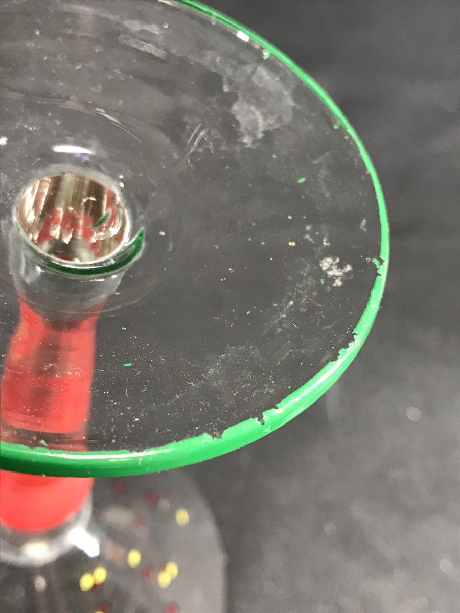 There is some chipping to the paint on the green rim on the bottom; see pictures.