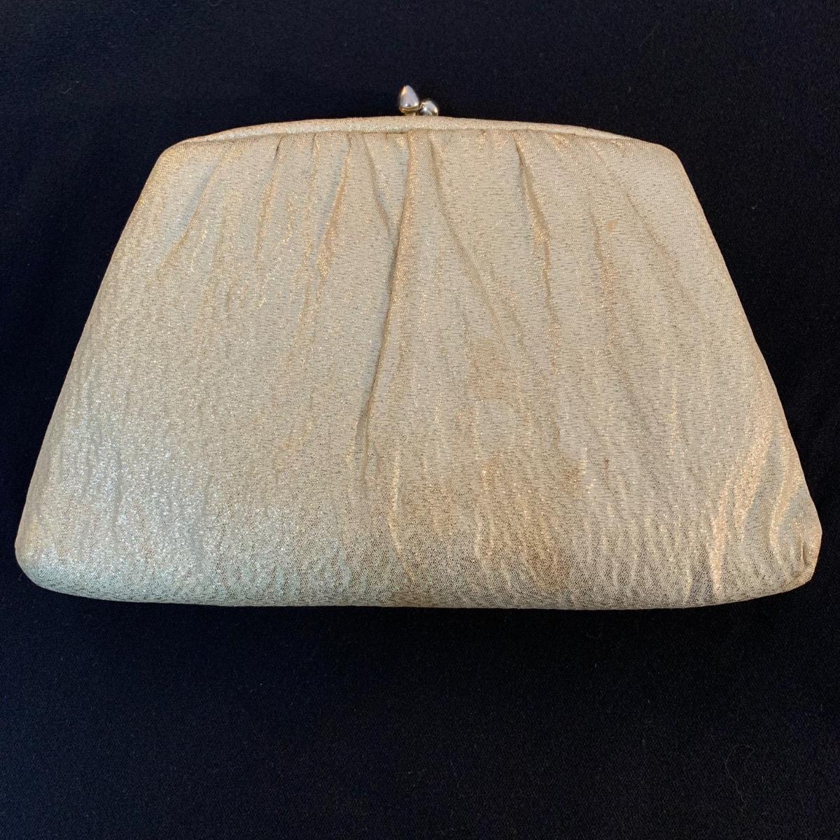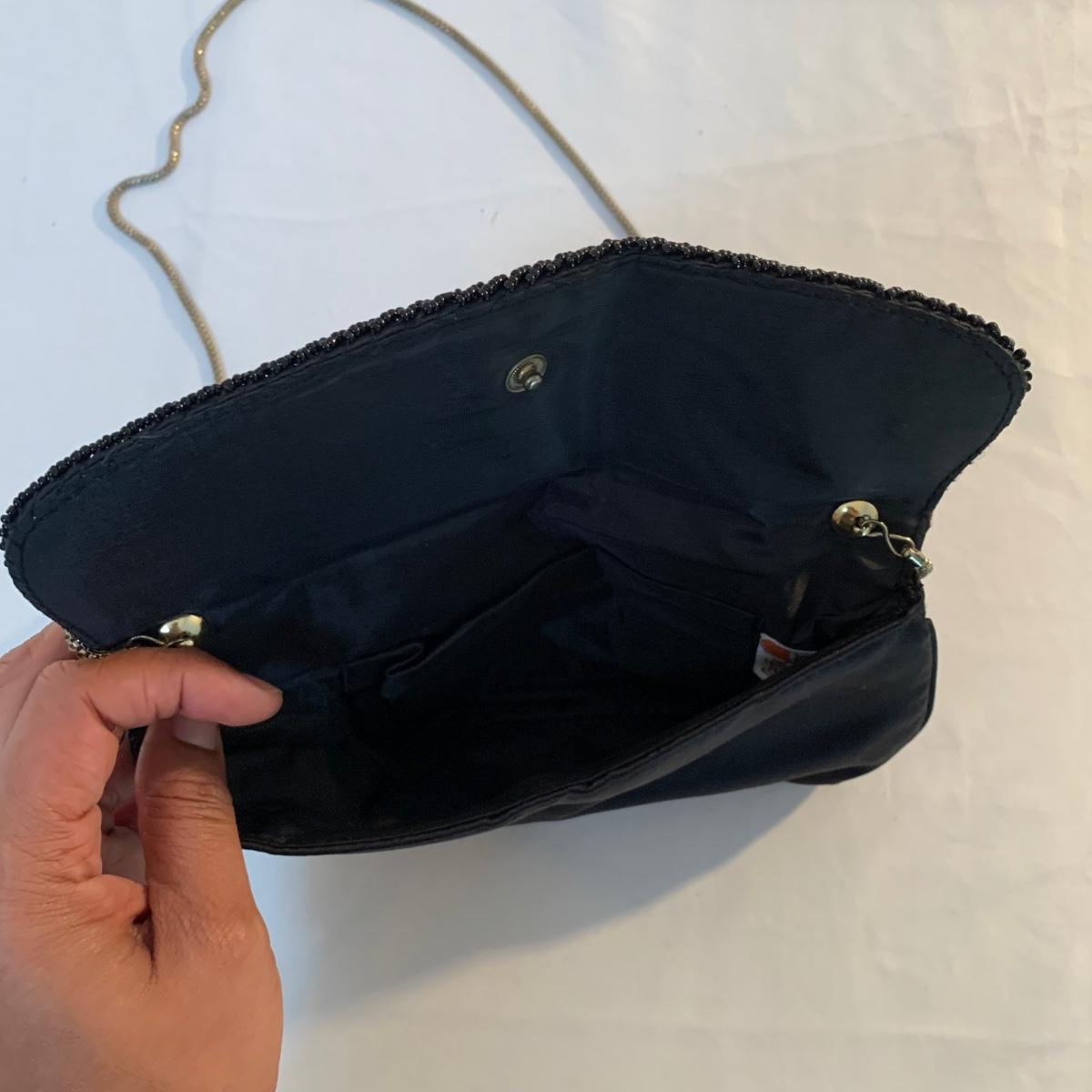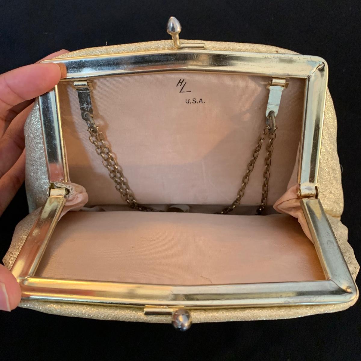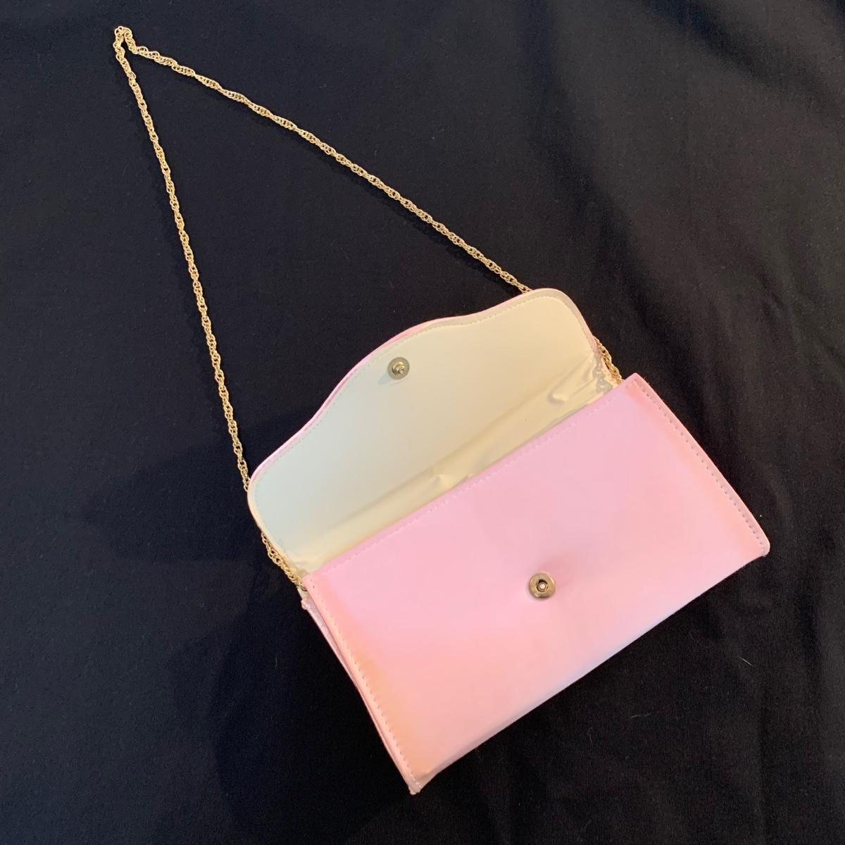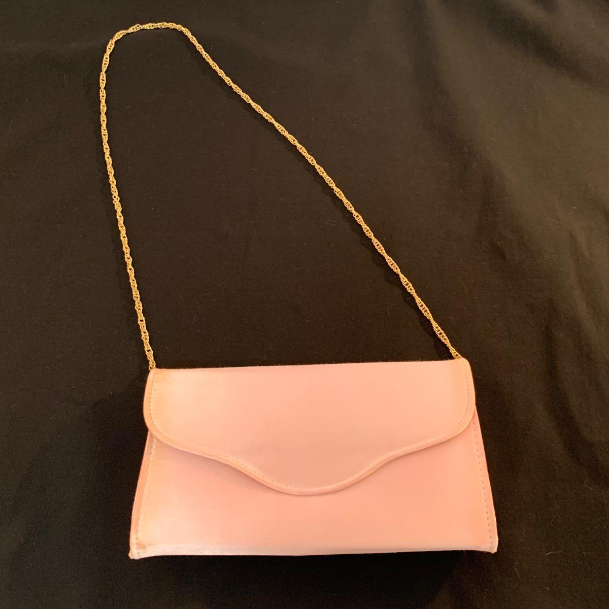 Collection of five formal clutch purses. Includes a pink silk-like clutch with gold braided strap, beaded clutch with seed bead strap, black silk-like clutch with beaded fold, gold-glittered snap clutch, and silk-like embroidered bird clutch with tassels. Pink clutch has some discoloration from time, otherwise items are in good condition. This lot can complete a variety of formal looks!