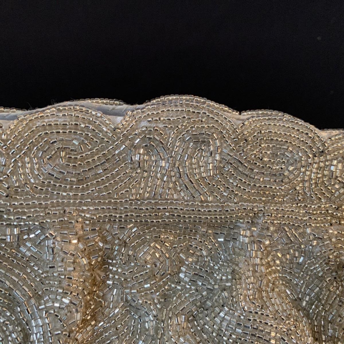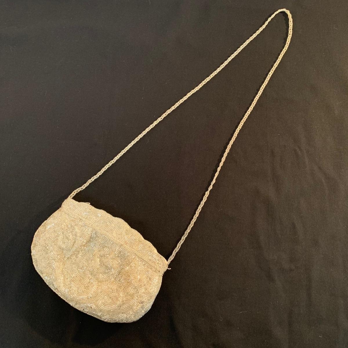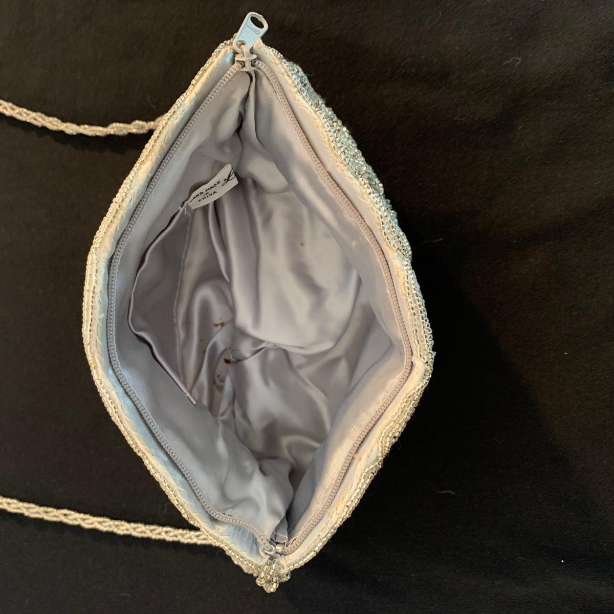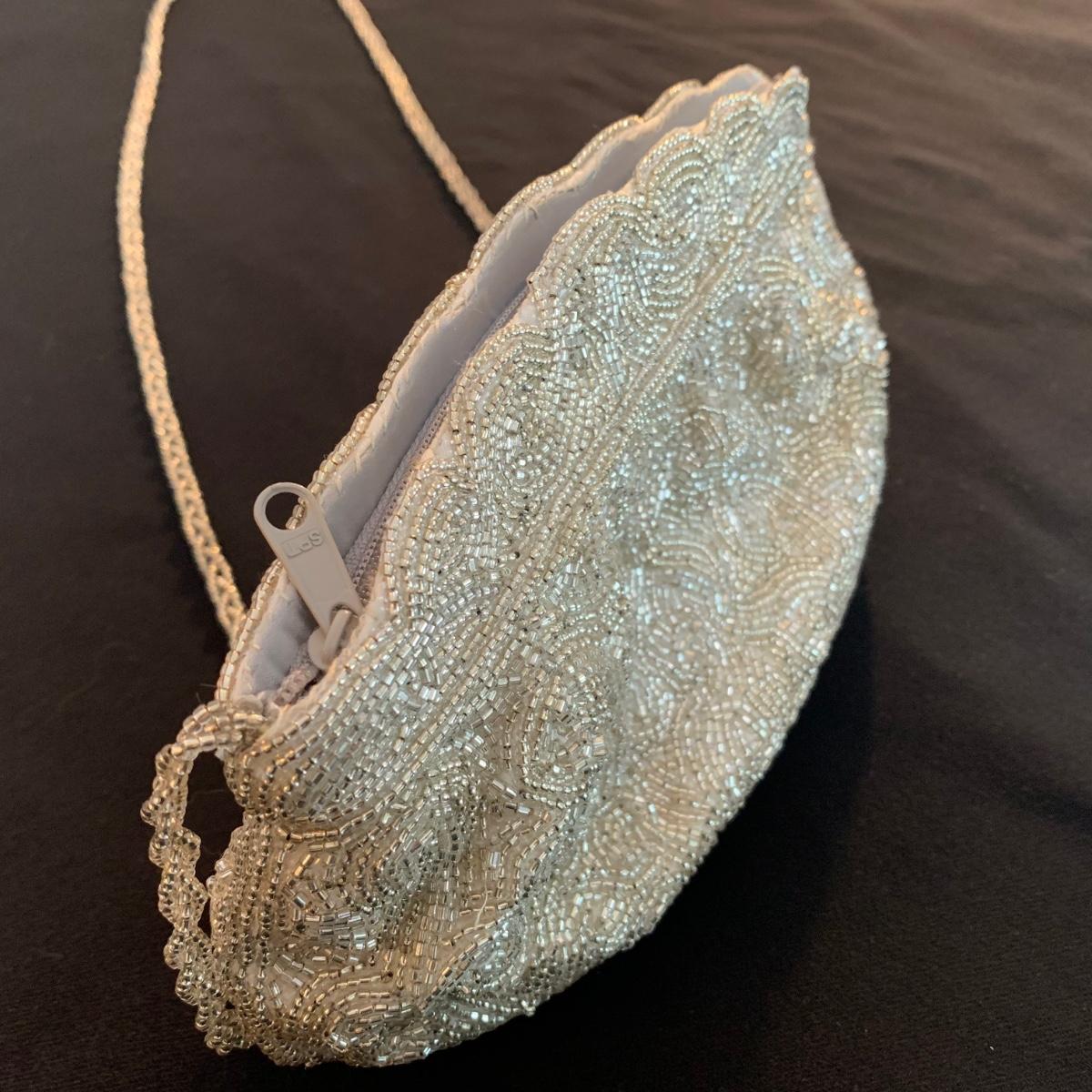 Collection of five formal clutch purses. Includes a pink silk-like clutch with gold braided strap, beaded clutch with seed bead strap, black silk-like clutch with beaded fold, gold-glittered snap clutch, and silk-like embroidered bird clutch with tassels. Pink clutch has some discoloration from time, otherwise items are in good condition. This lot can complete a variety of formal looks!