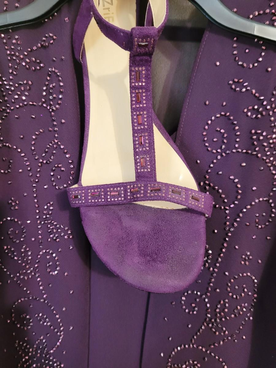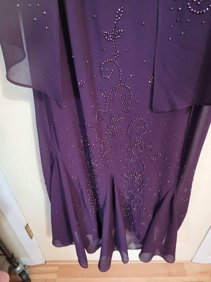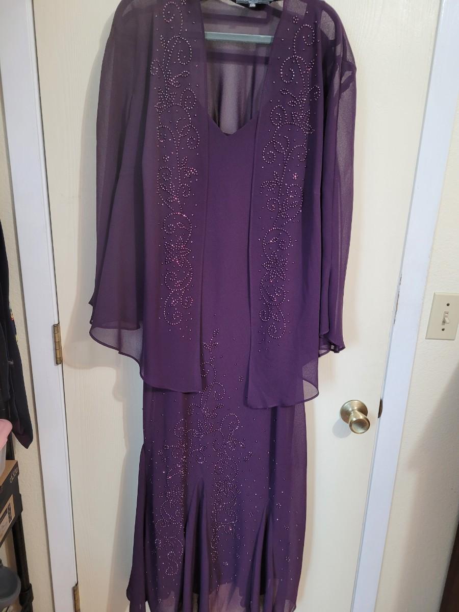 Just in time for the holidays, this dress was worn once to a wedding. It's got just enough bling to stand out but not so much to be gaudy. size 20w Eggplant is the color at 5' 6" it hit just at my ankles The shoes match perfectly and are size 11