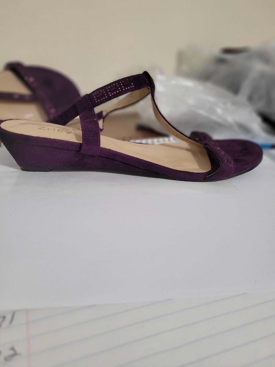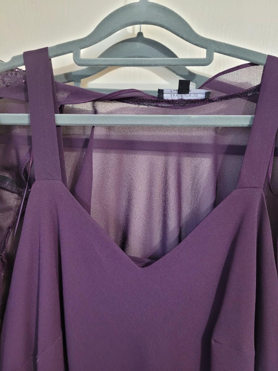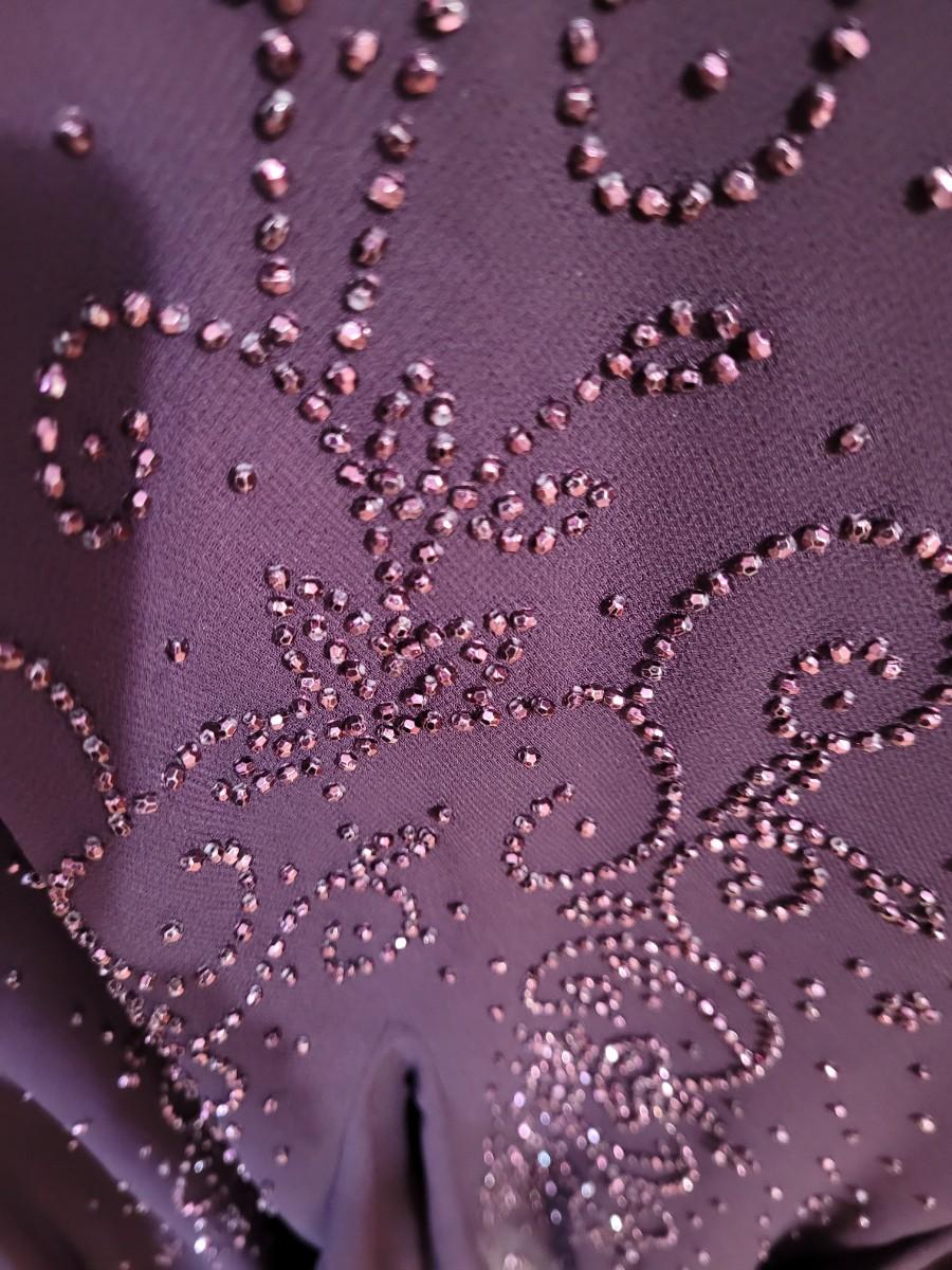 Just in time for the holidays, this dress was worn once to a wedding. It's got just enough bling to stand out but not so much to be gaudy. size 20w Eggplant is the color at 5' 6" it hit just at my ankles The shoes match perfectly and are size 11