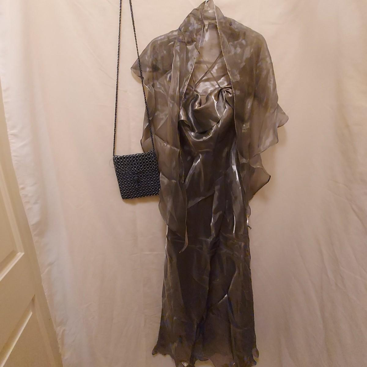 Four formal dresses by Trina Turk, Aidan Maddox and more. Two dresses are cocktail length and two are maxi. The Muzaffer evening dress comes with a wrap and a beaded bag and is a sz 6. The black satin dress appears to have no tags. Shipping available