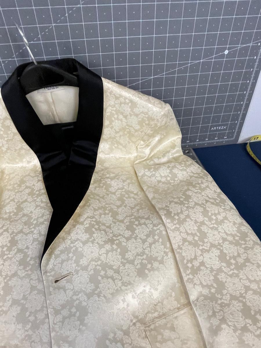 Formal Satin Jacket - Cream and Black. Pullman Taylor