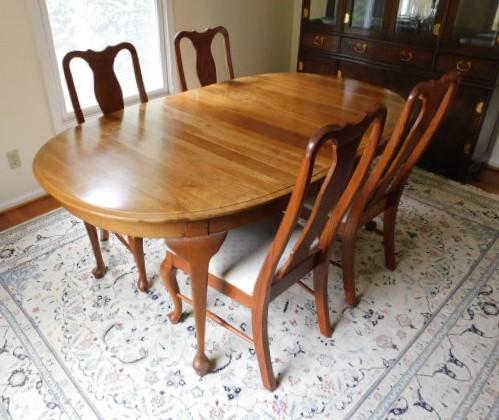 Formal Solid Wood Dining Table with 8 Chairs including Two Leaves main floor has a few stairs to maneuver to the drive