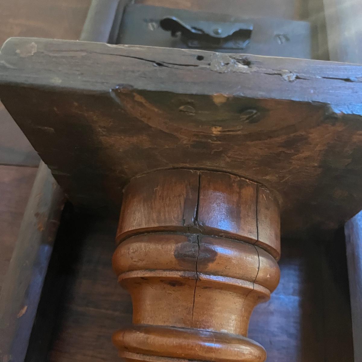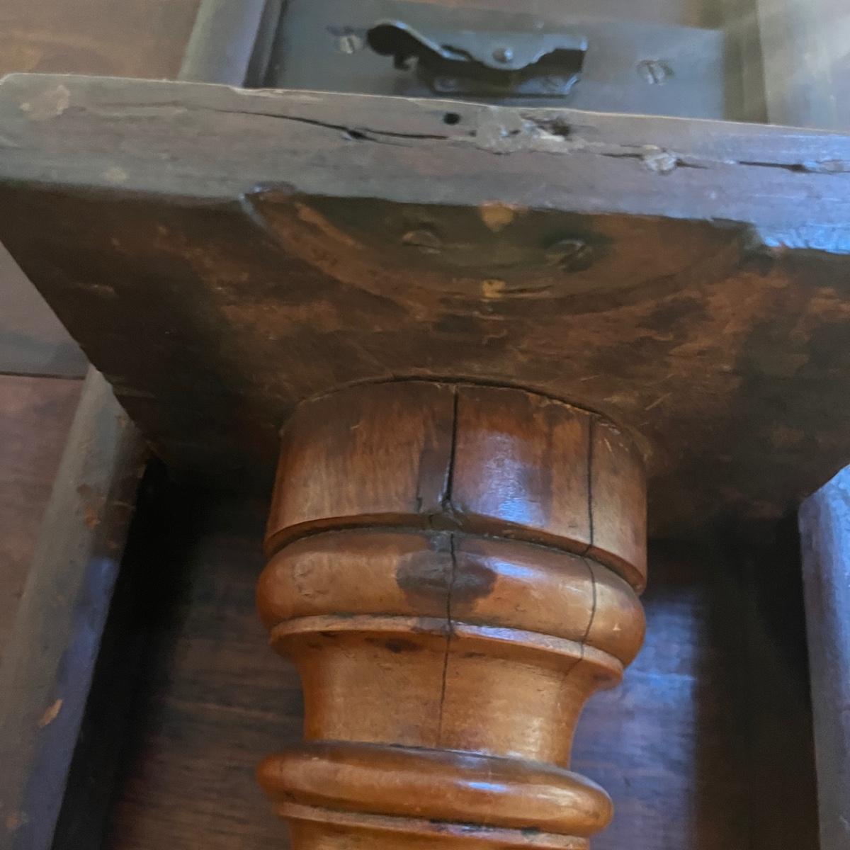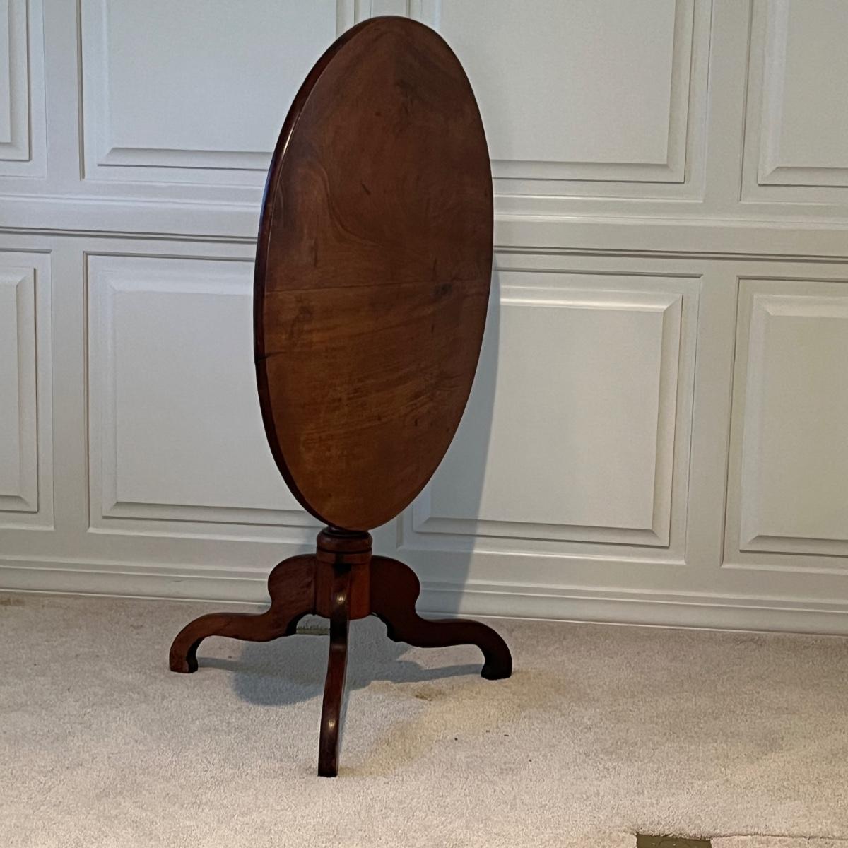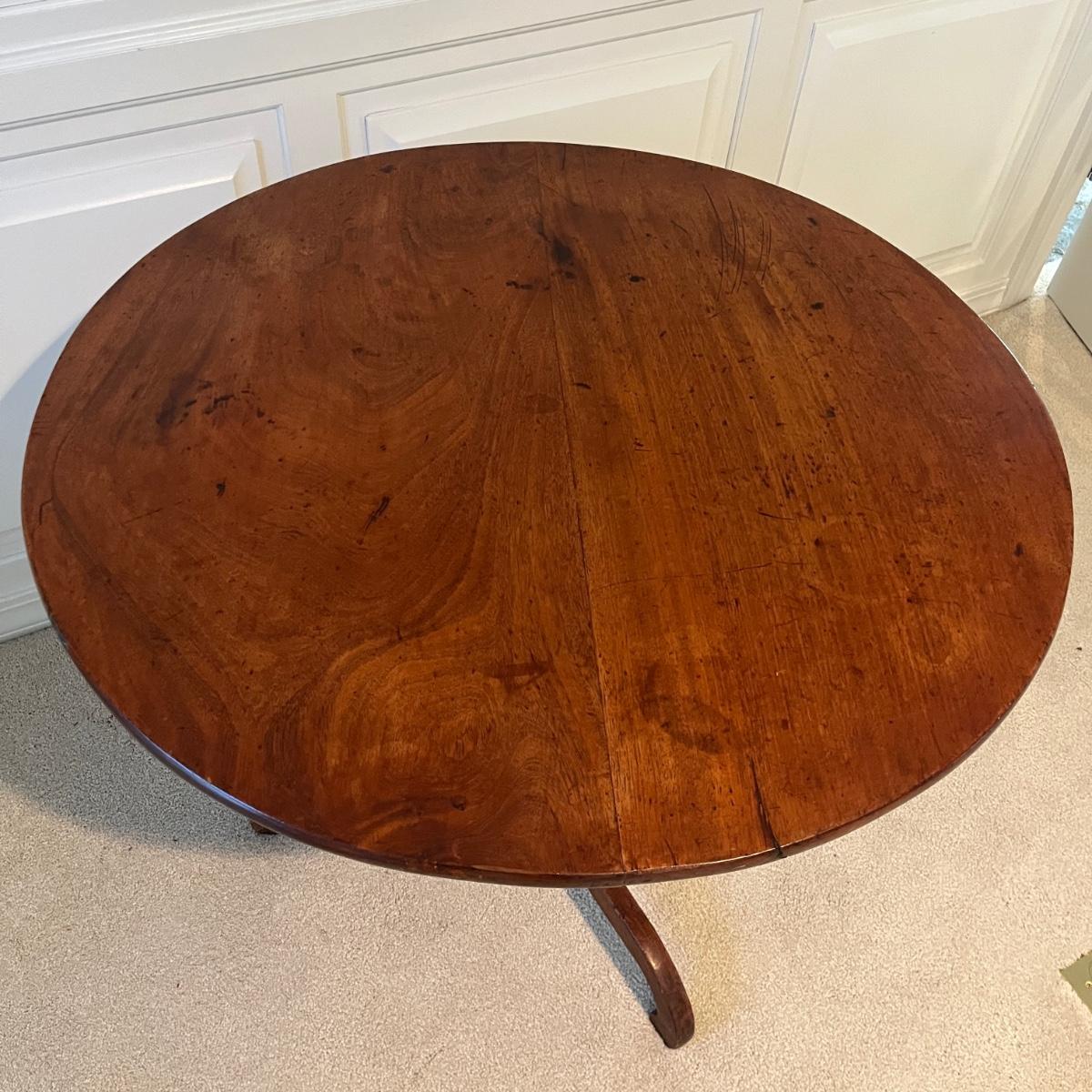Lot includes an antique formal tilt top table. Table measures 33”D x 29.5”H. There are some cracks in the base, see pictures.