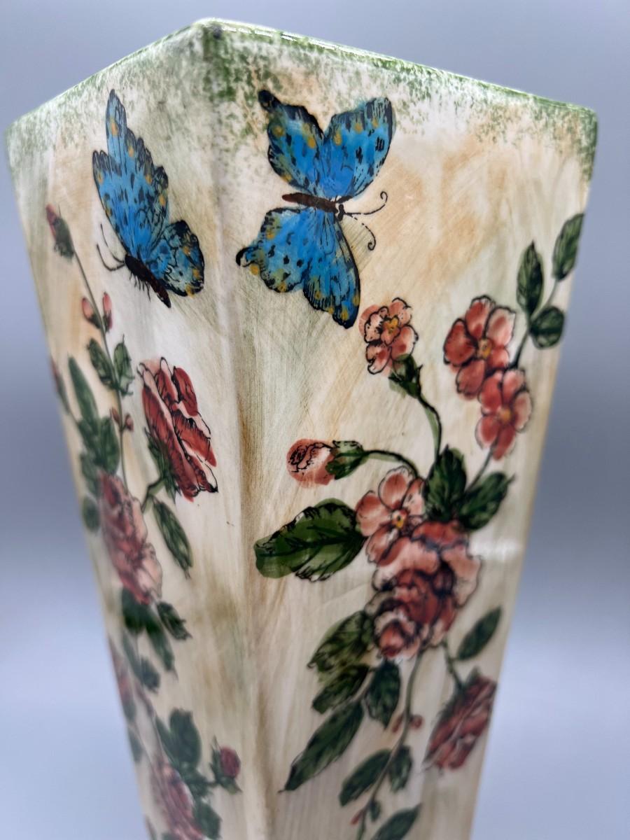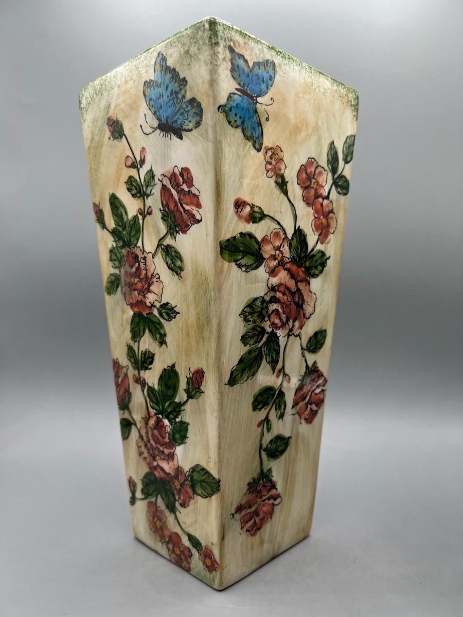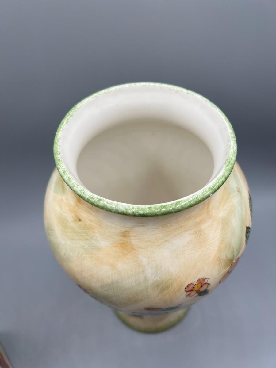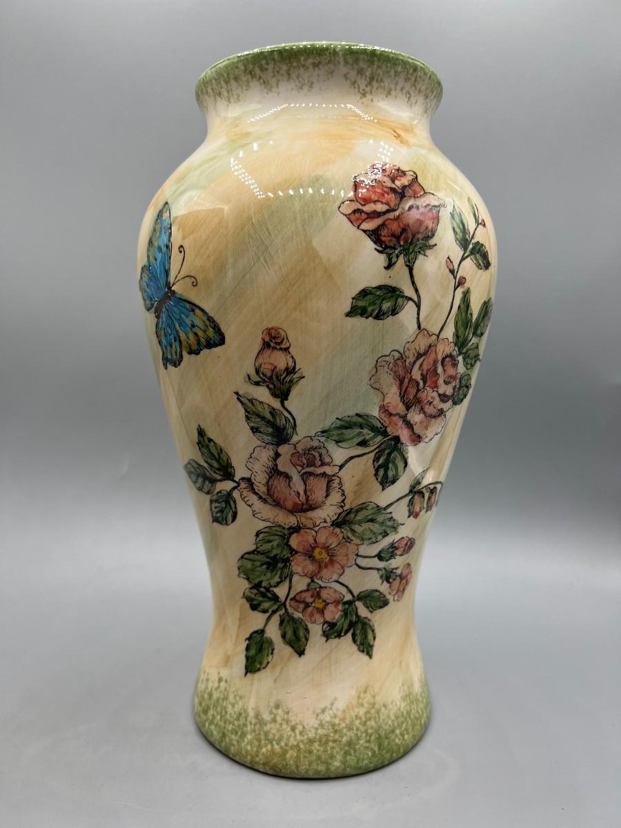 Formalities by Baum Bros. Three Piece Ceramic Decor Set Vases & Lidded Trinket Dish. Pink floral design. Pieces are matching pattern. Good condition.