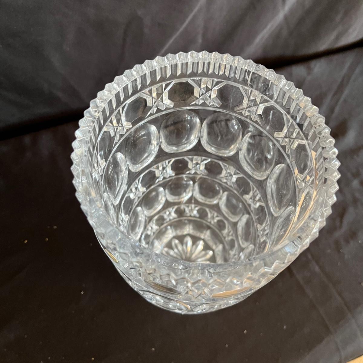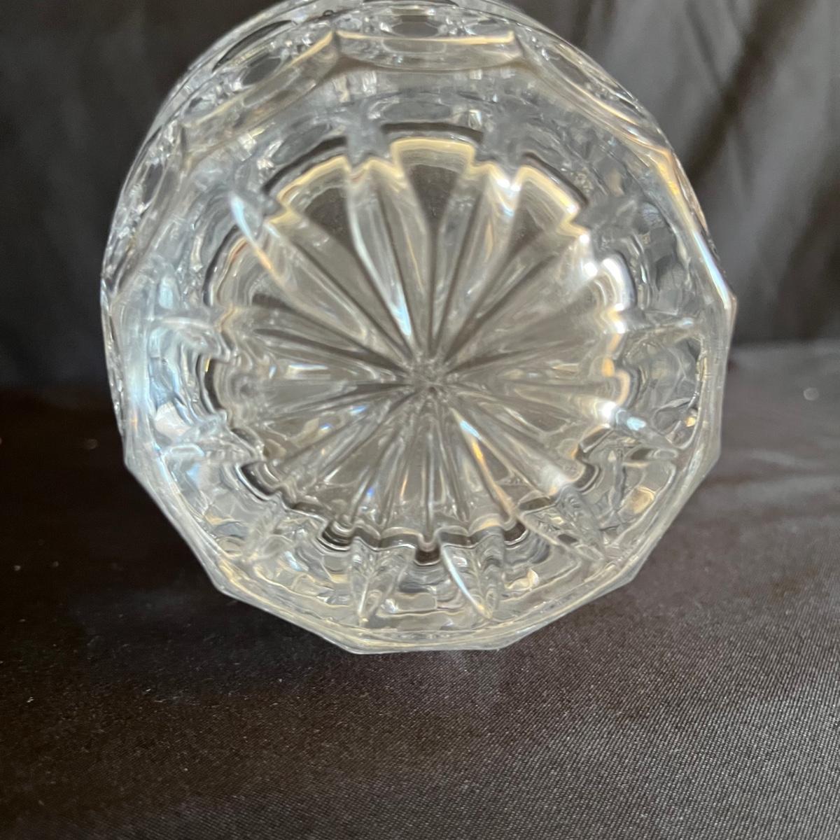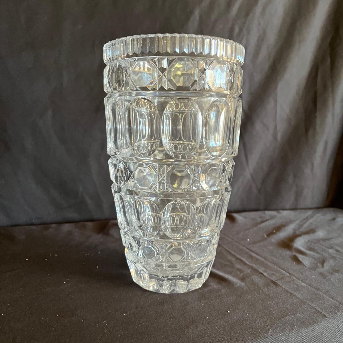 Lot includes a formed glass table lamp with inline switch and a formed glass vase. Lamp measures 6.5”D x 12”H.