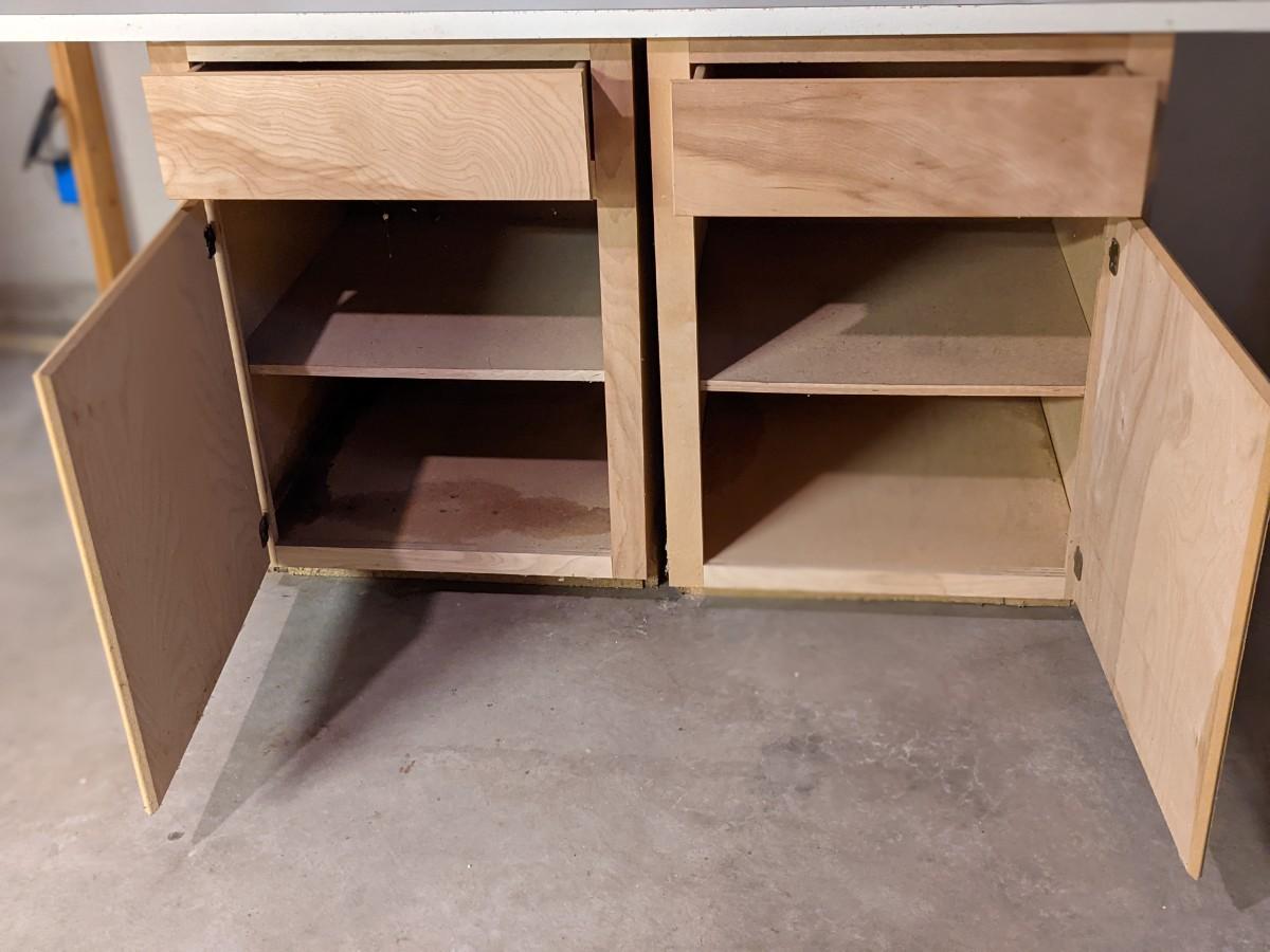 Formica top workbench with cabinets