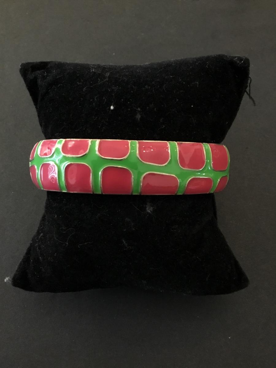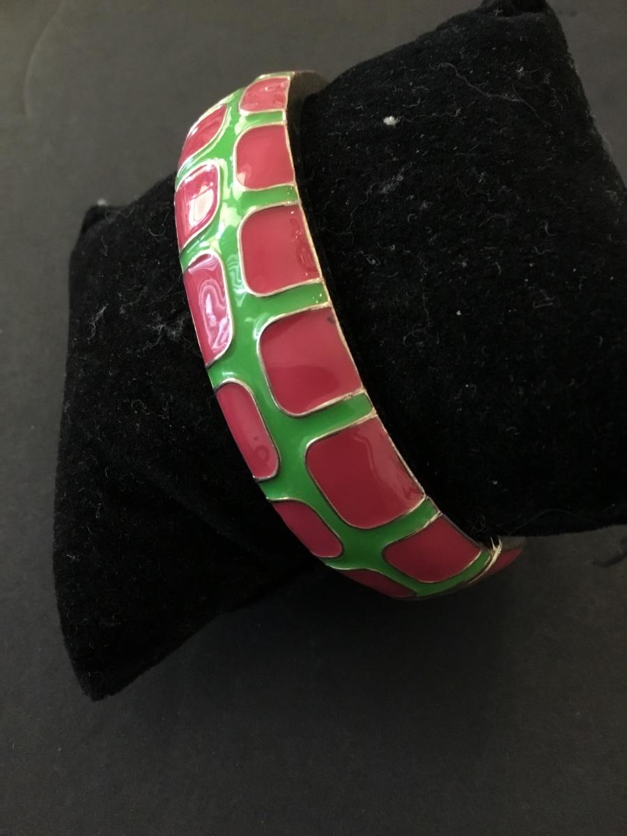 Fornash signed bracelet, pink and green enamel. Super cute.