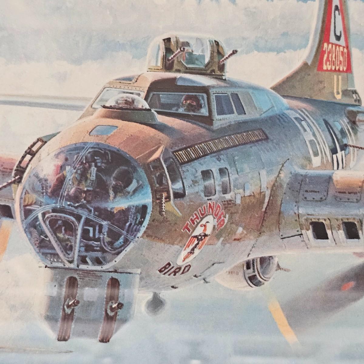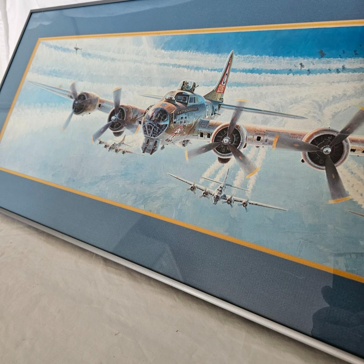 Beautiful action print of B-17 aircraft in combat during WWII. Print is by artist Keith Harris, has metal frame and mat background. Item measures 33.75" x 14.25". Explanation card on back. See photos for details. Shipping available. Shipping can be costly. We suggest contacting our preferred local shipping provider, Postage Express, with dimensions and getting an estimate before bidding: (828) 255-9250 or shipping@postageexpressnc.com.