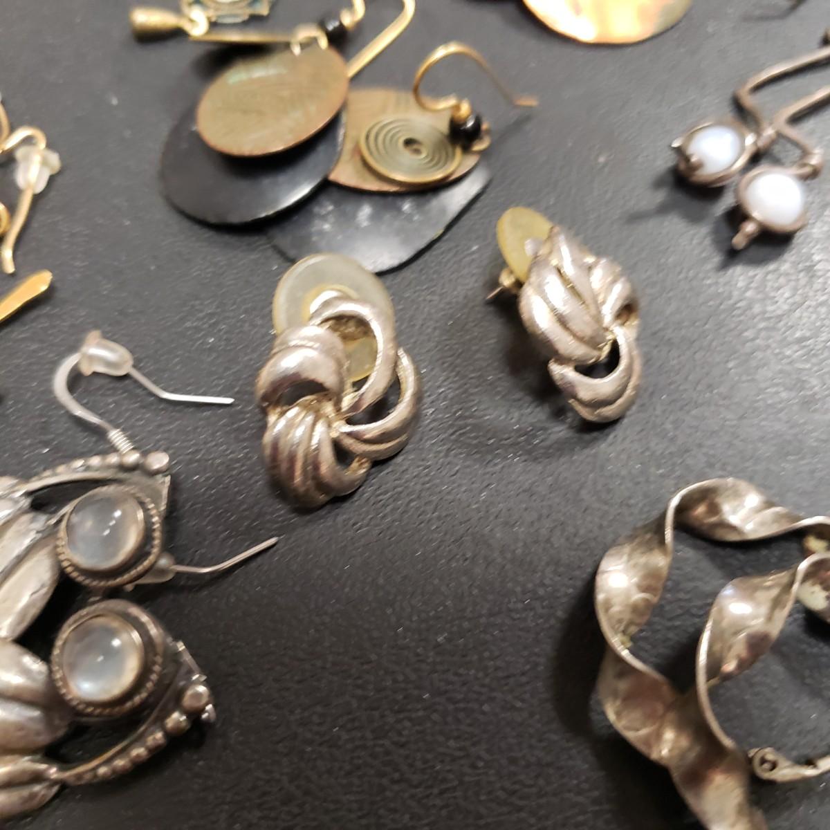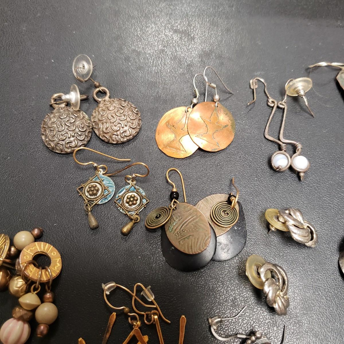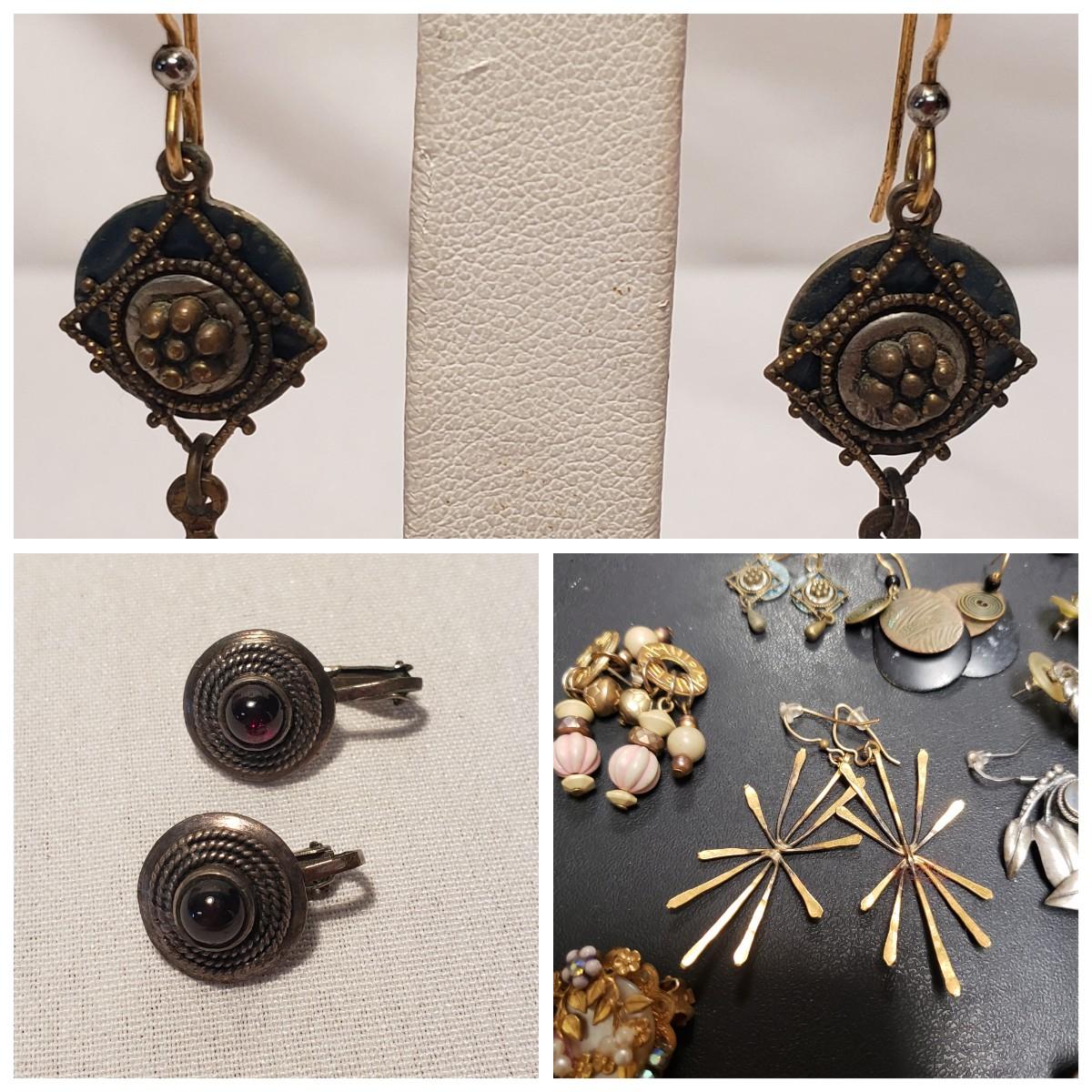 This large selection of 40 pairs of earrings will be perfect for any outfit! The majority of earrings are for pierced ears, while two are clip earrings sets. See pictures. All known markings are shown in photos.