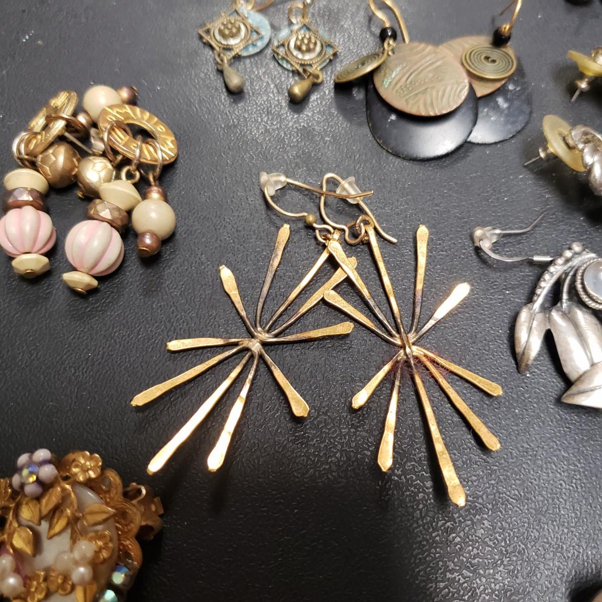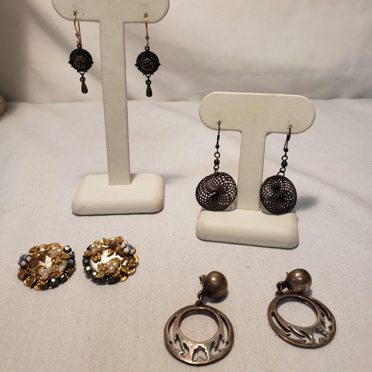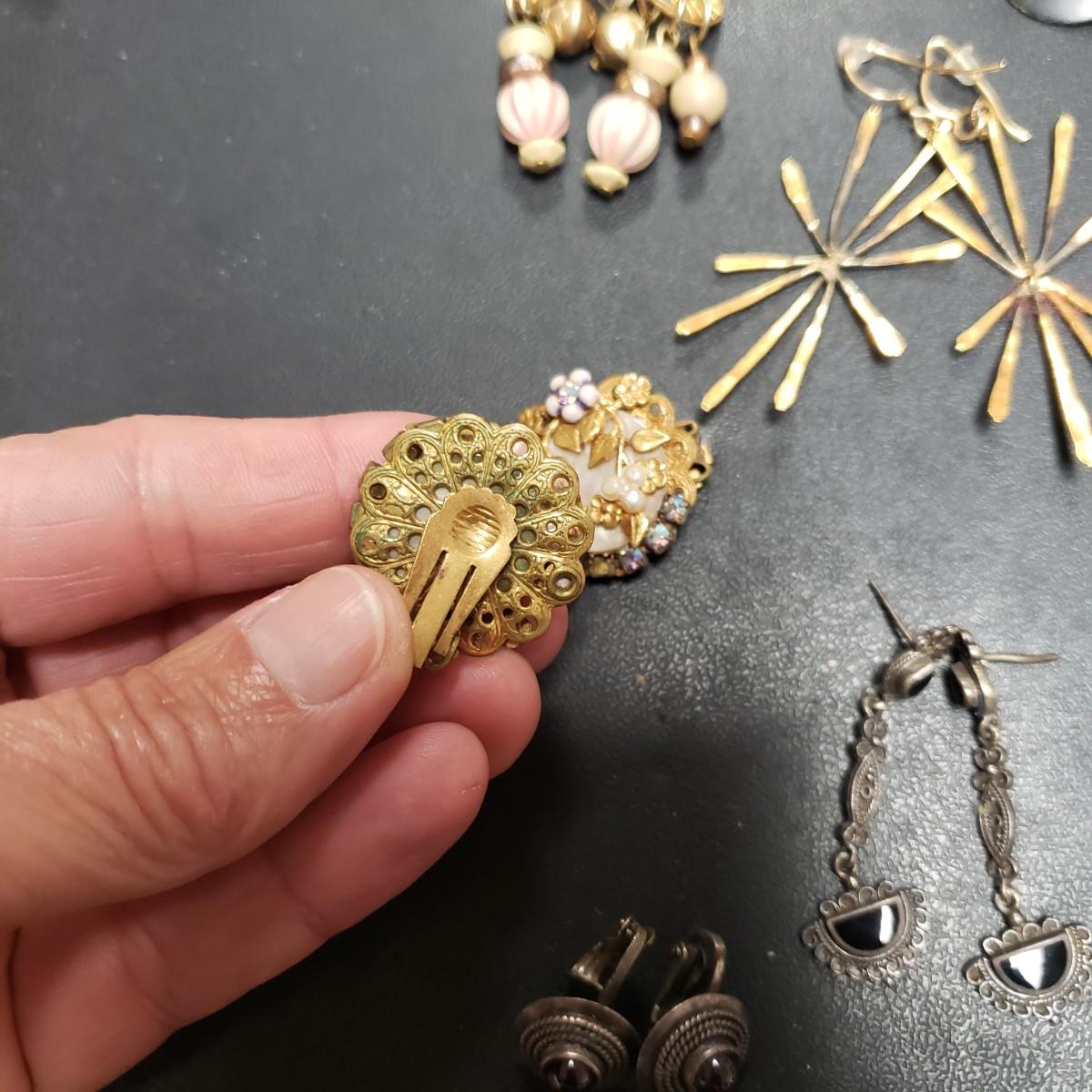This large selection of 40 pairs of earrings will be perfect for any outfit! The majority of earrings are for pierced ears, while two are clip earrings sets. See pictures. All known markings are shown in photos.