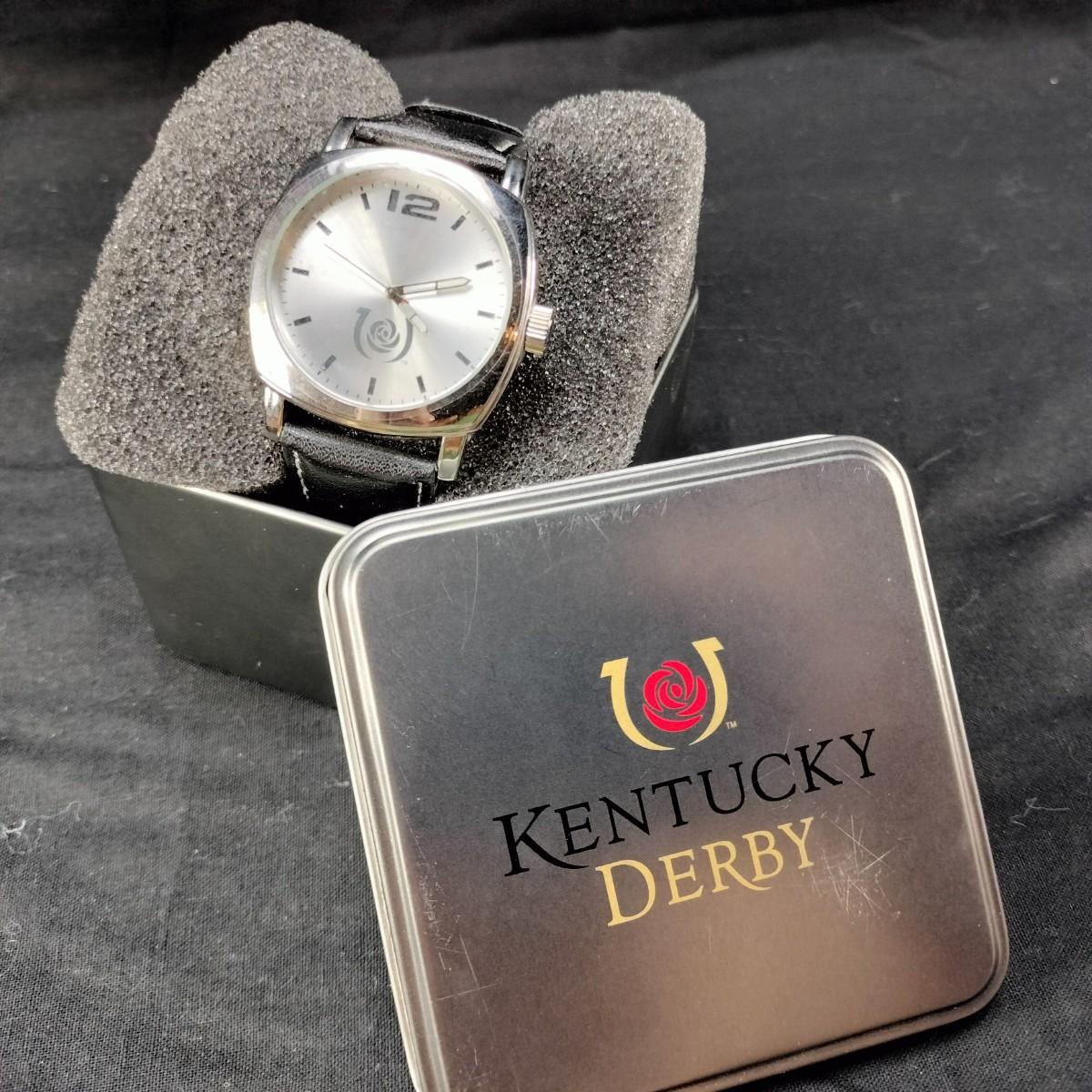 This auction lot is for a Fossil Brand Kentucky Derby Watch. This watch comes with the Derby labeled tin box and a nice leather wristband. It is new however the battery has run down from being on display, just needs a new battery.