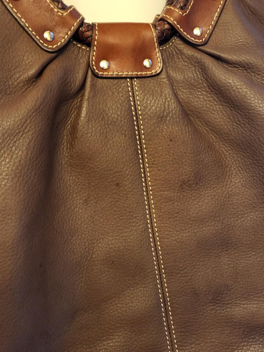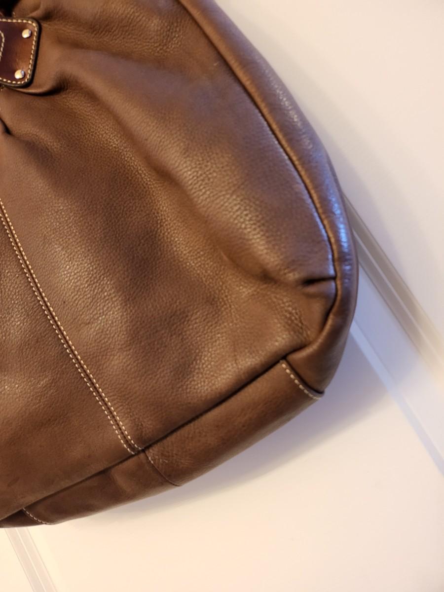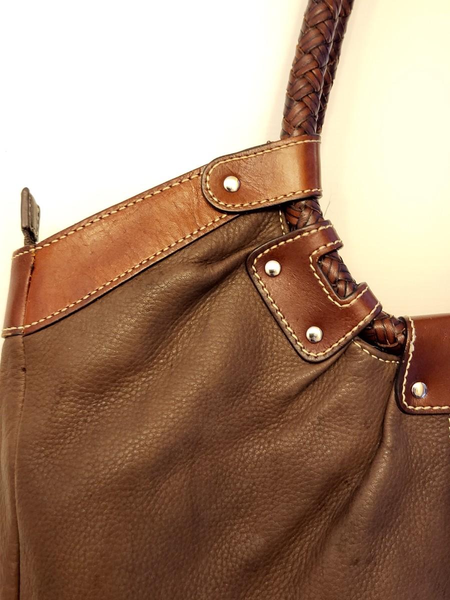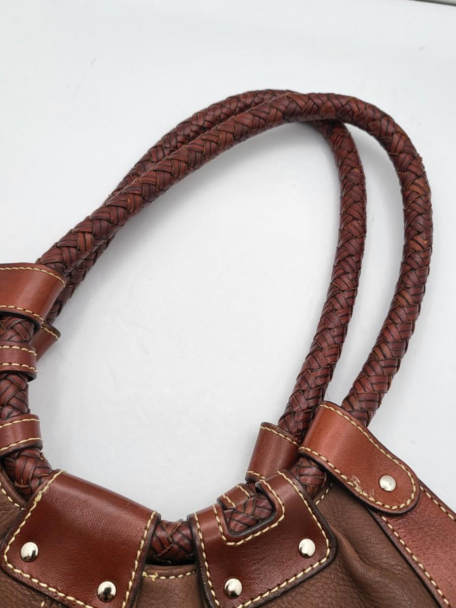 Fossil brand brown pebbled leather shoulder bag, measures 14" x 11" x 3". Double braided leather straps. Center zipper compartment & open compartment on either side. Lots of room in this stylish bag.