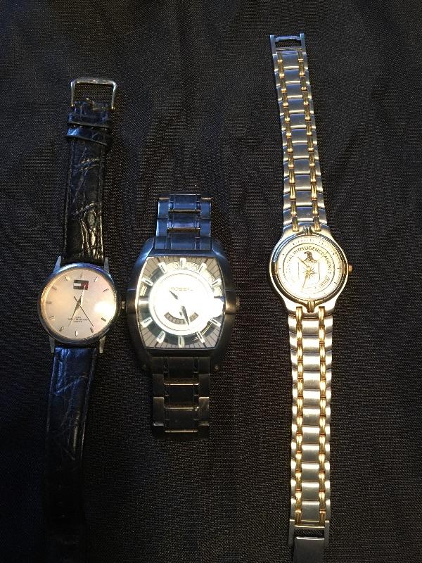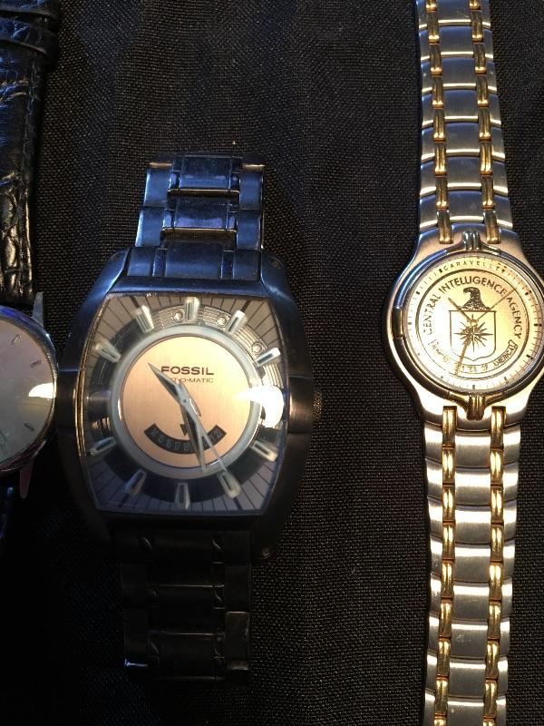 Fossil watch, Bulova Central Intelligence Agency Watch, and Tommy Hilfiger watch
