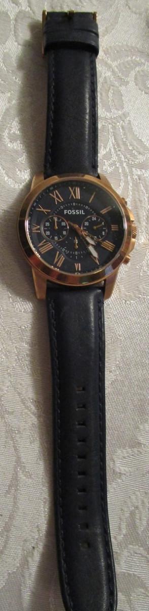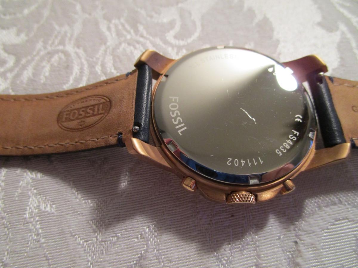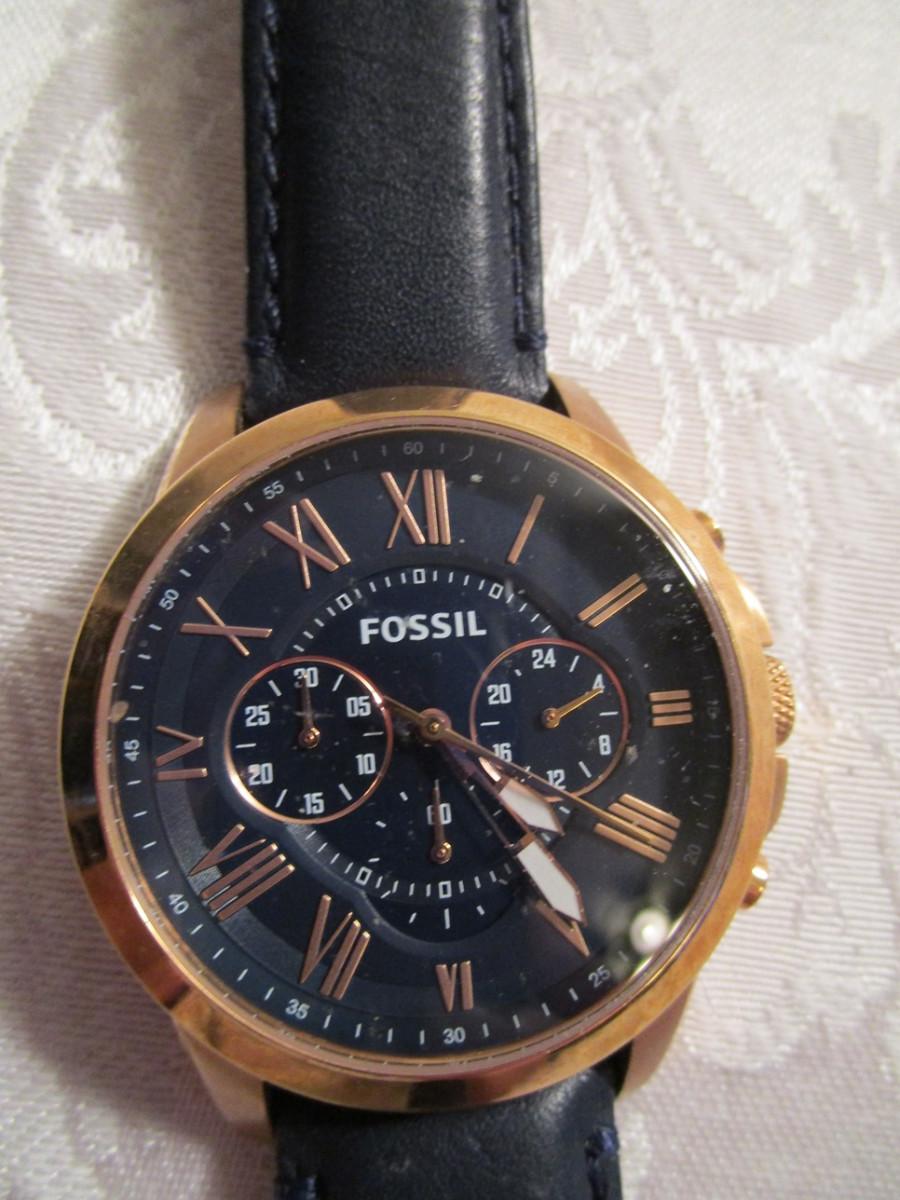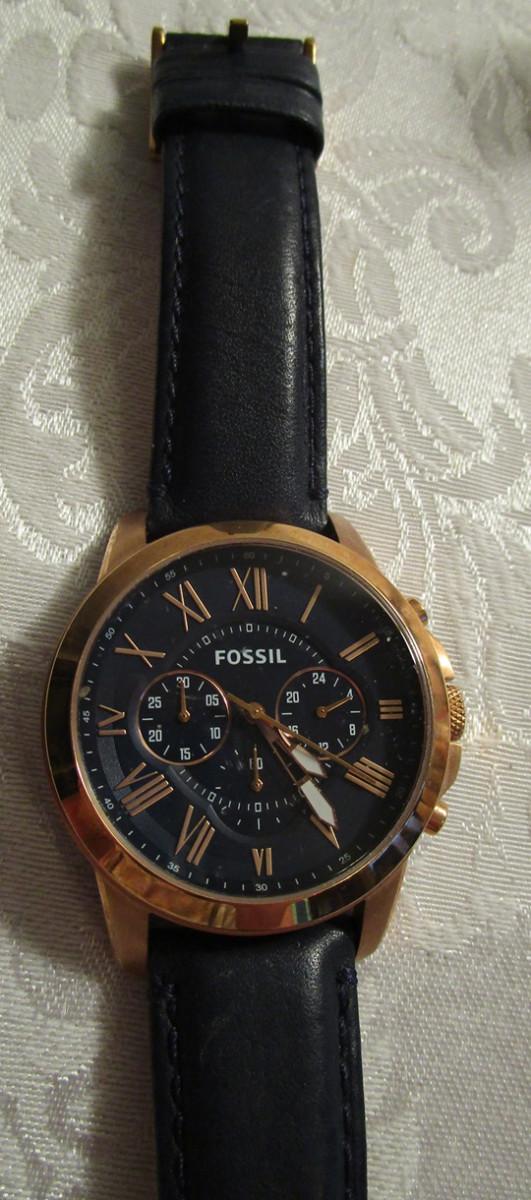 Fossil Model FS4835 Quartz Chronograph men's watch, rose gold color with blue dial