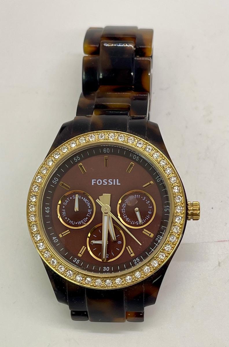 Women's Fossil Watch with Tortoiseshell Clasp Band