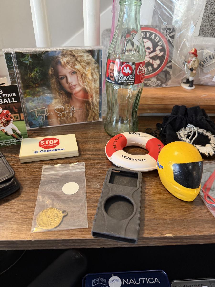 Fossil Watches, Earrings, Bracelets, Vintage Newspaper, Prince Albert Cans and Taylor Swift CD