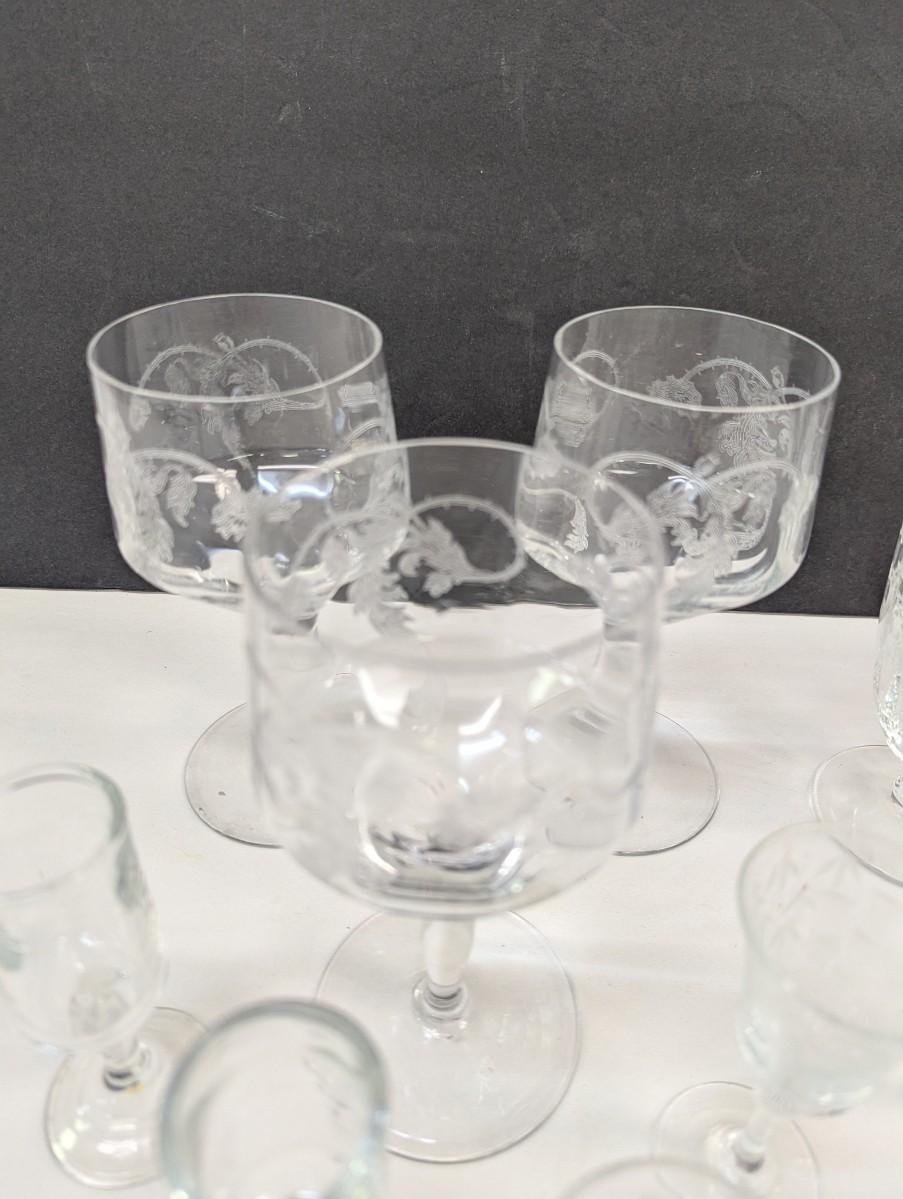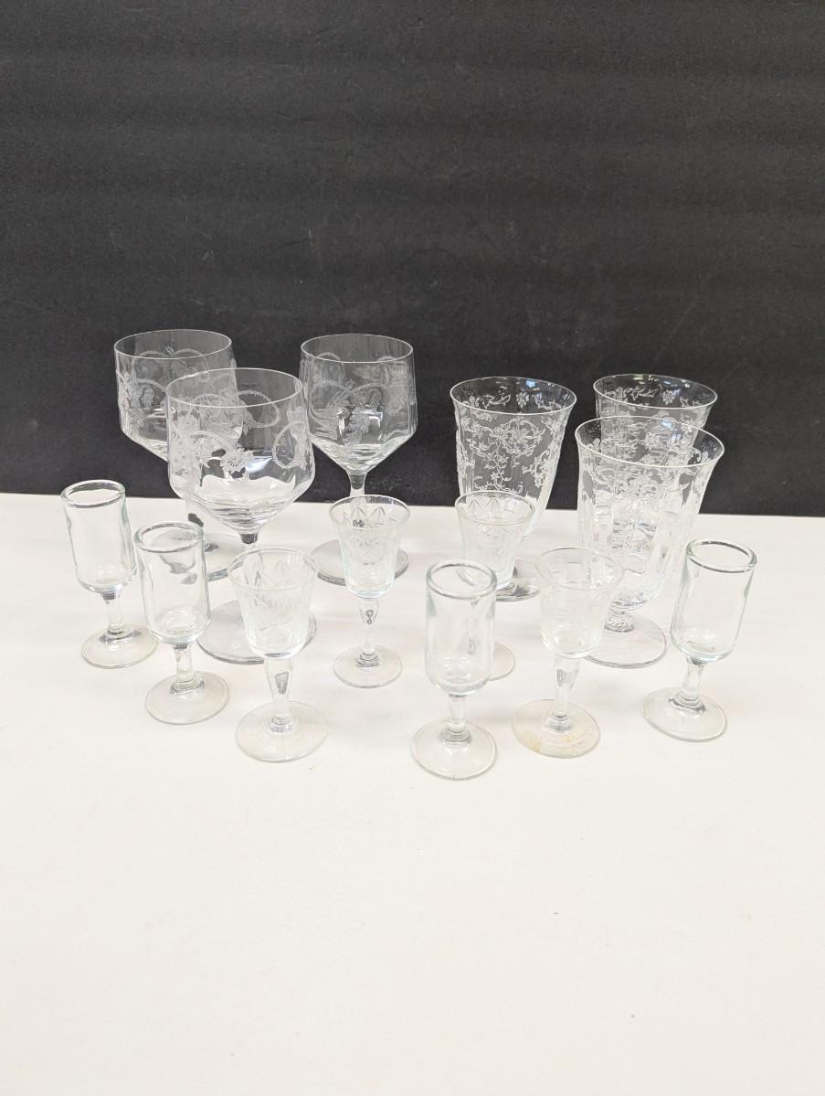 Fostora Etched Glasses & Tiffin Franciscan Etched Glasses