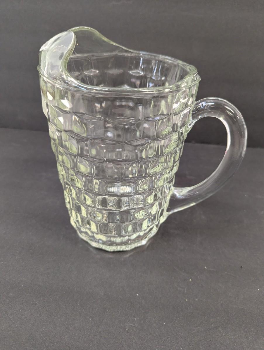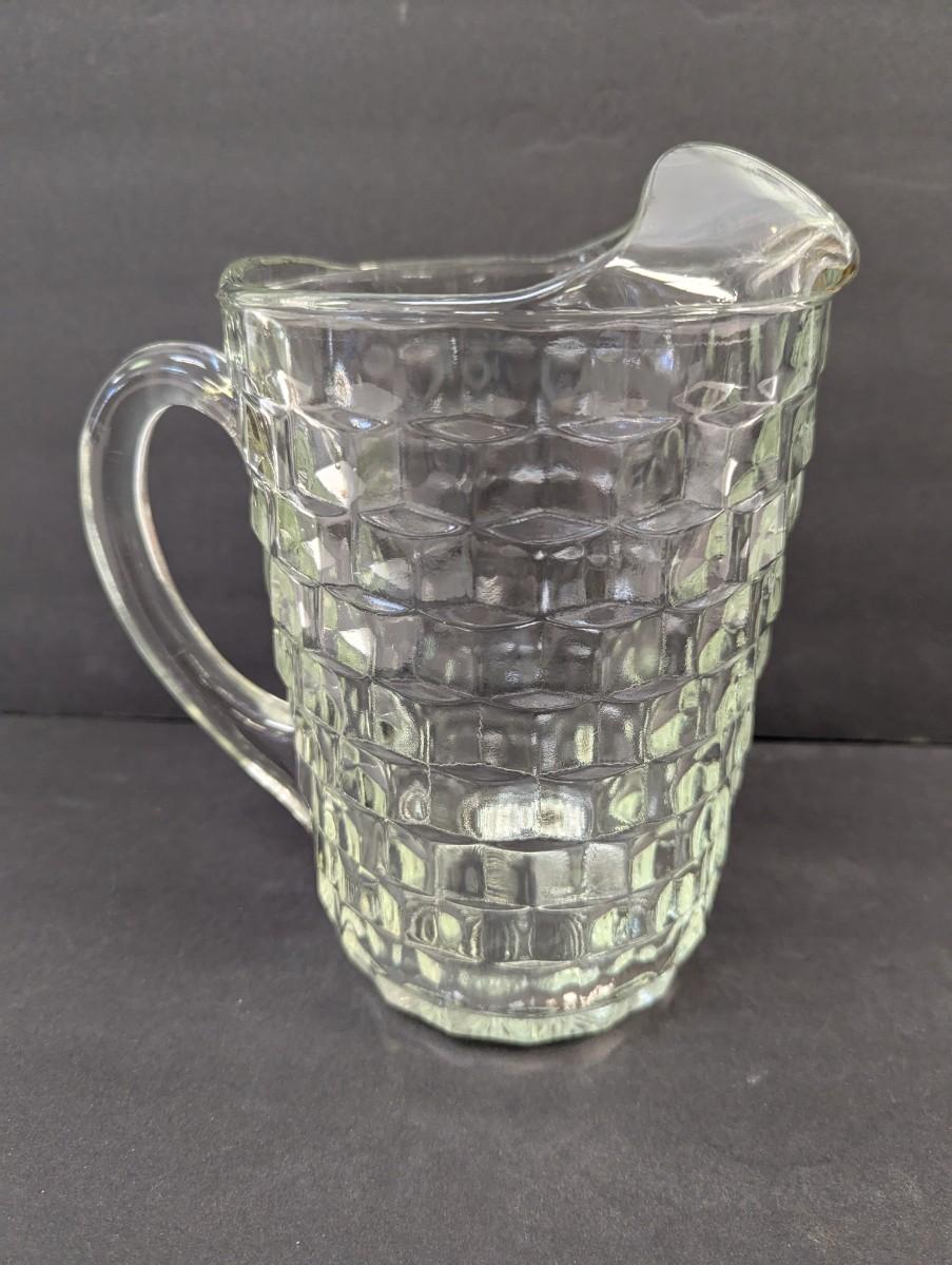 Fostoria American Pressed Glass Cube Pattern Pitcher With Ice Lip #19