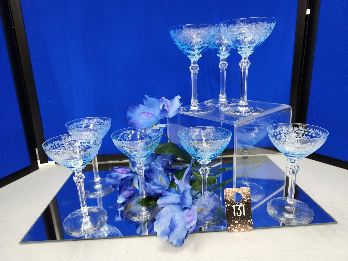Crystal, Rare, beautiful 5" stemmed glasses. 12 stems (only 8 are pictured)