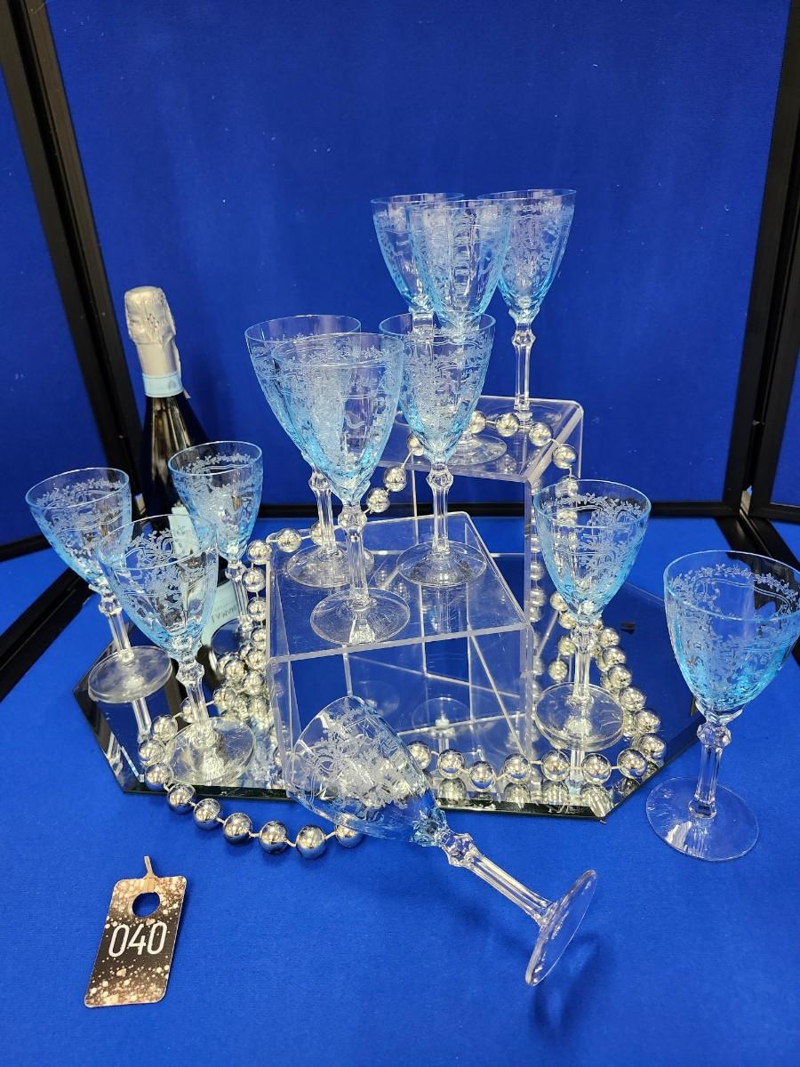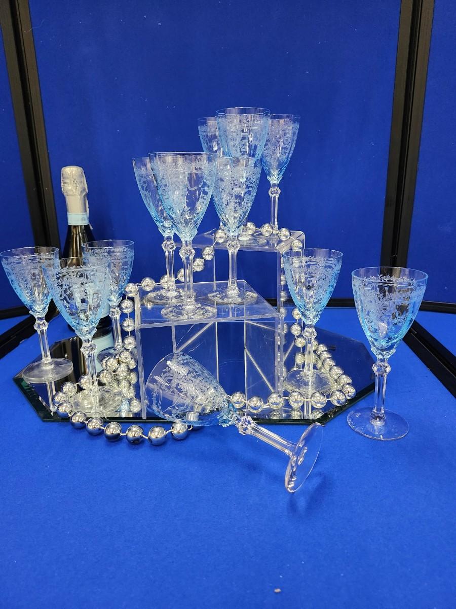 Fostoria Azure Blue Wine Glasses Romance Pattern