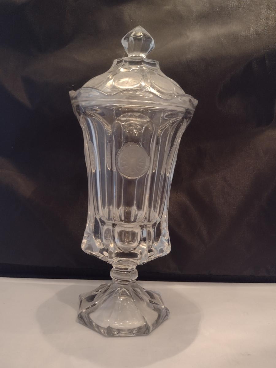 Fostoria Clear Coin Glass Footed Urn with Lid- Approx 13" Tall