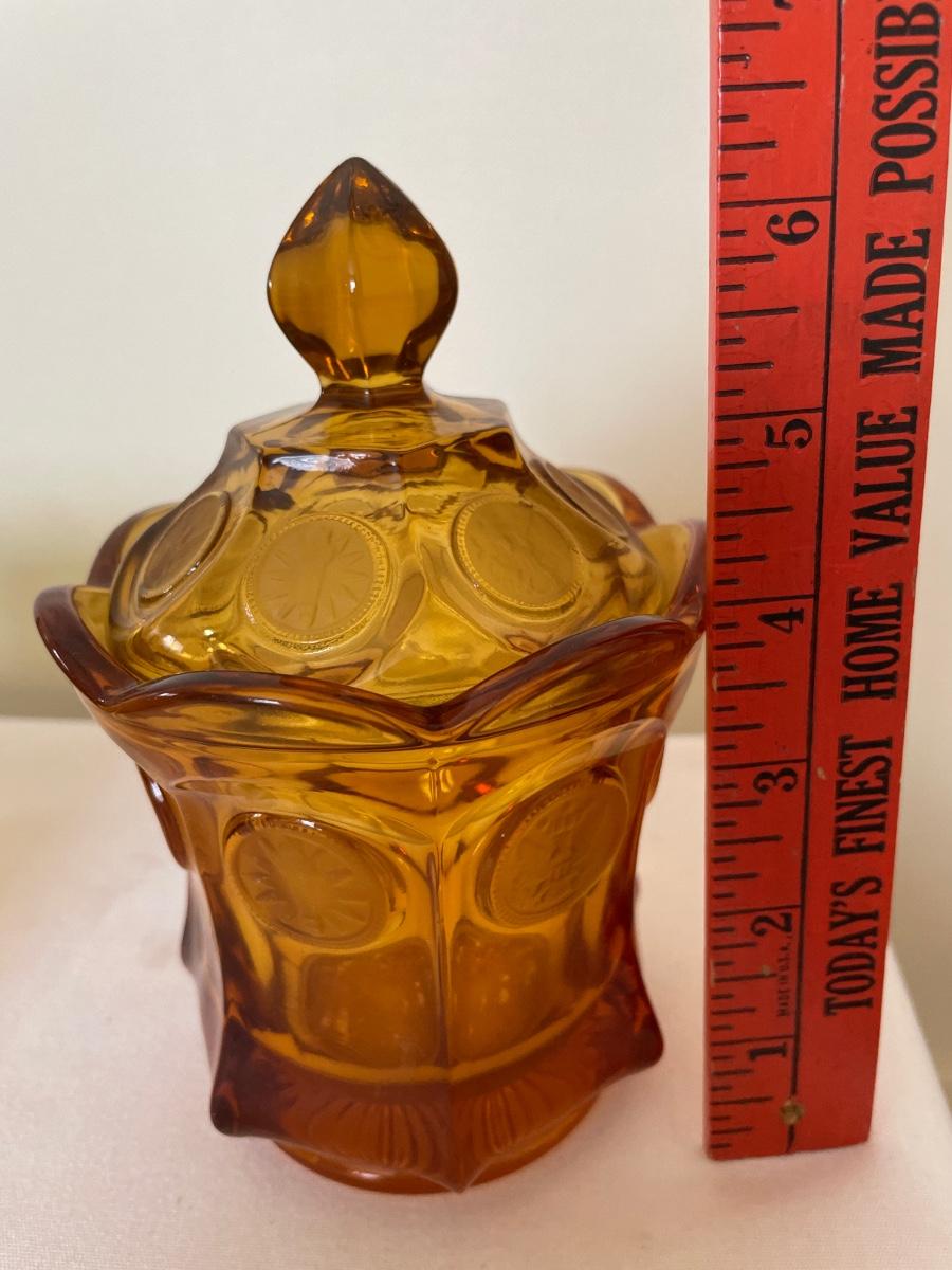 Fostoria Amber glass coin design sugar and bowl