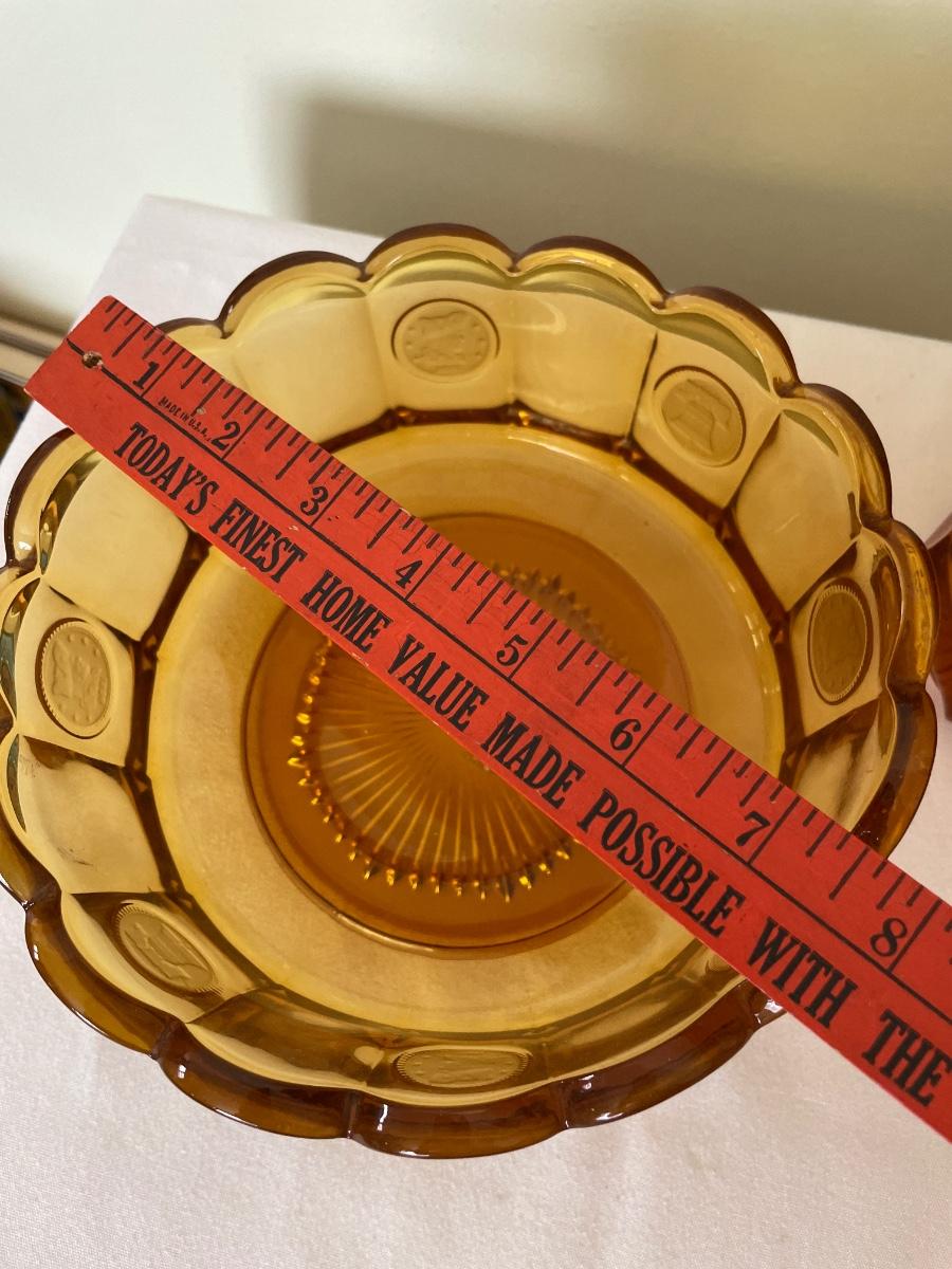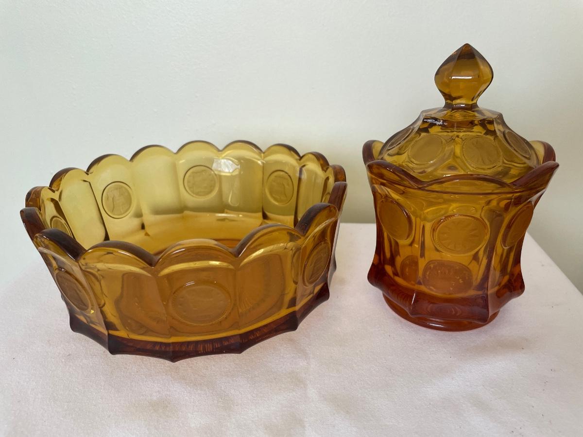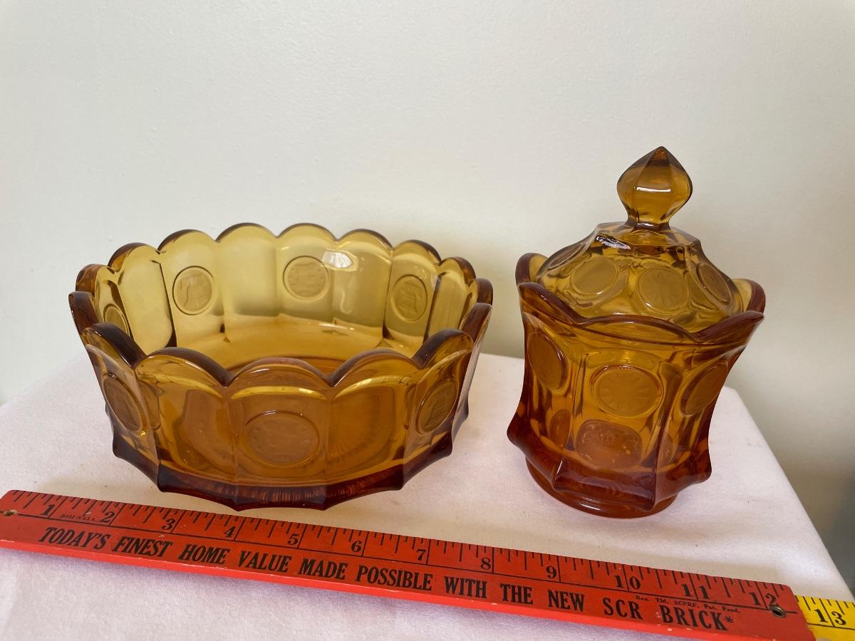 Fostoria coin amber glass sugar and large bowl