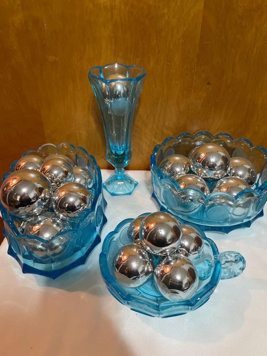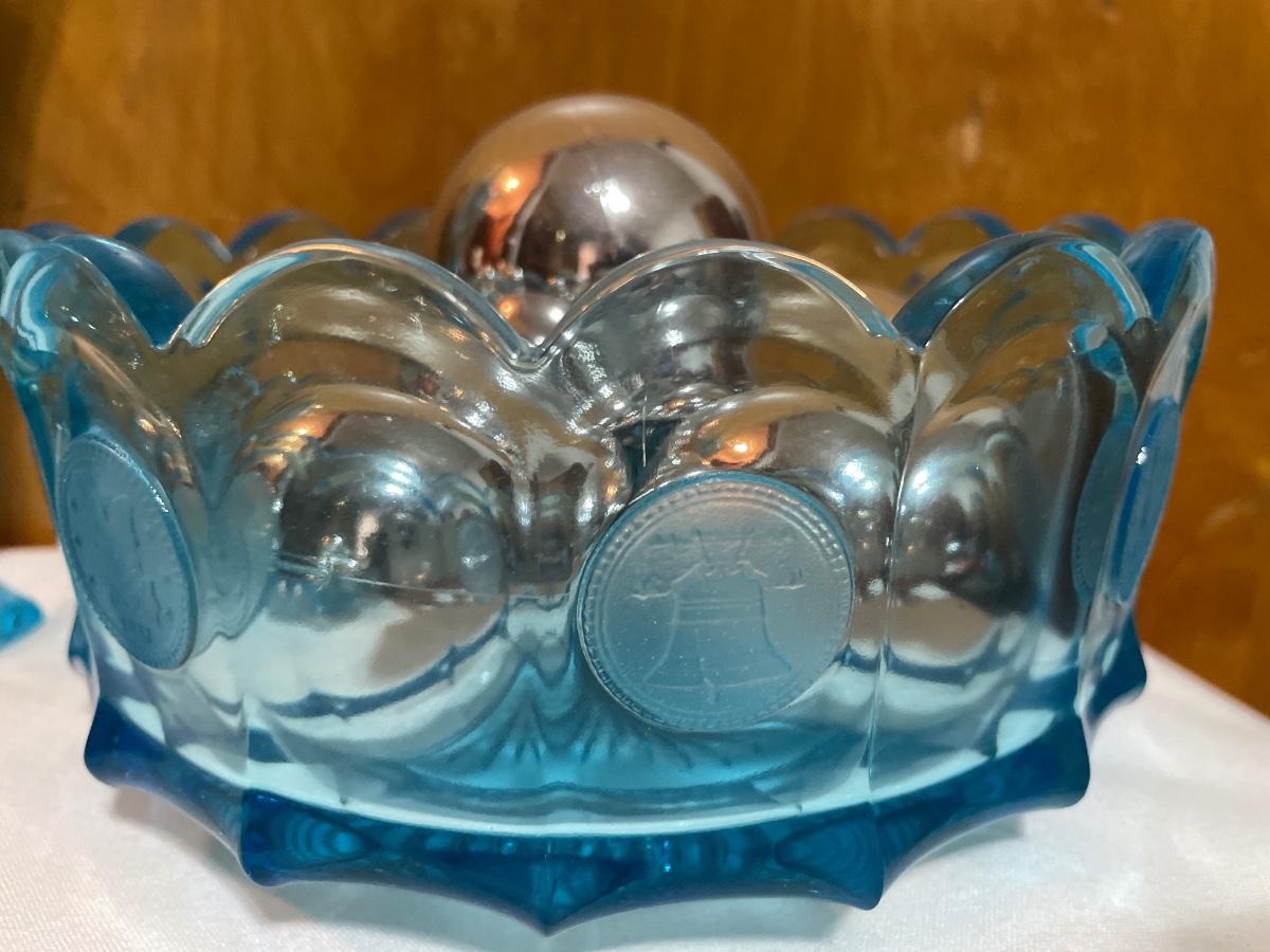 Fostoria cool blue coin dot set