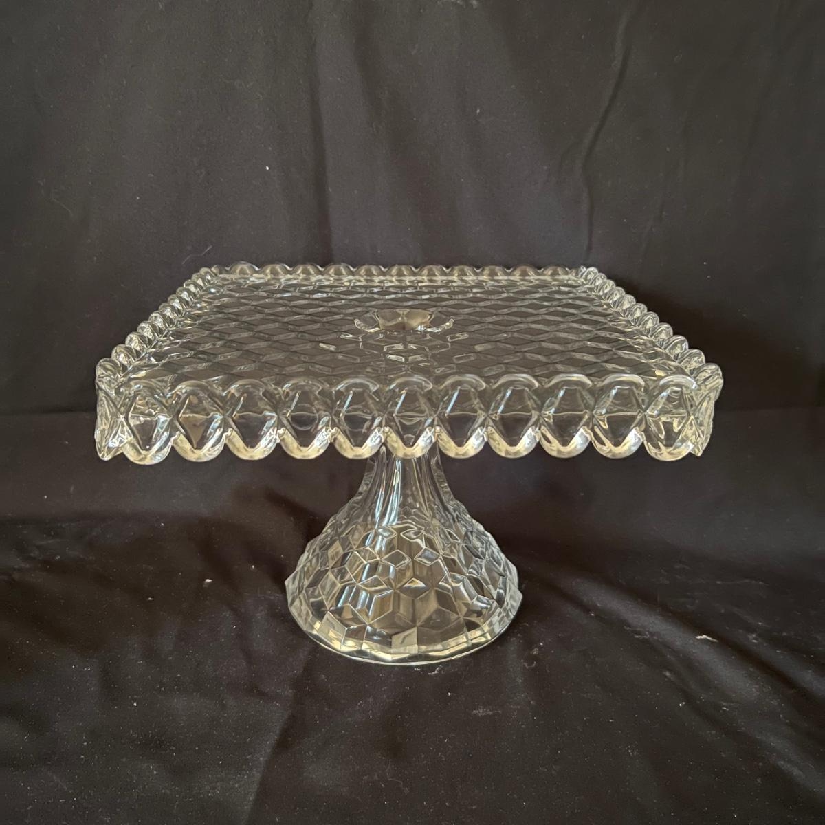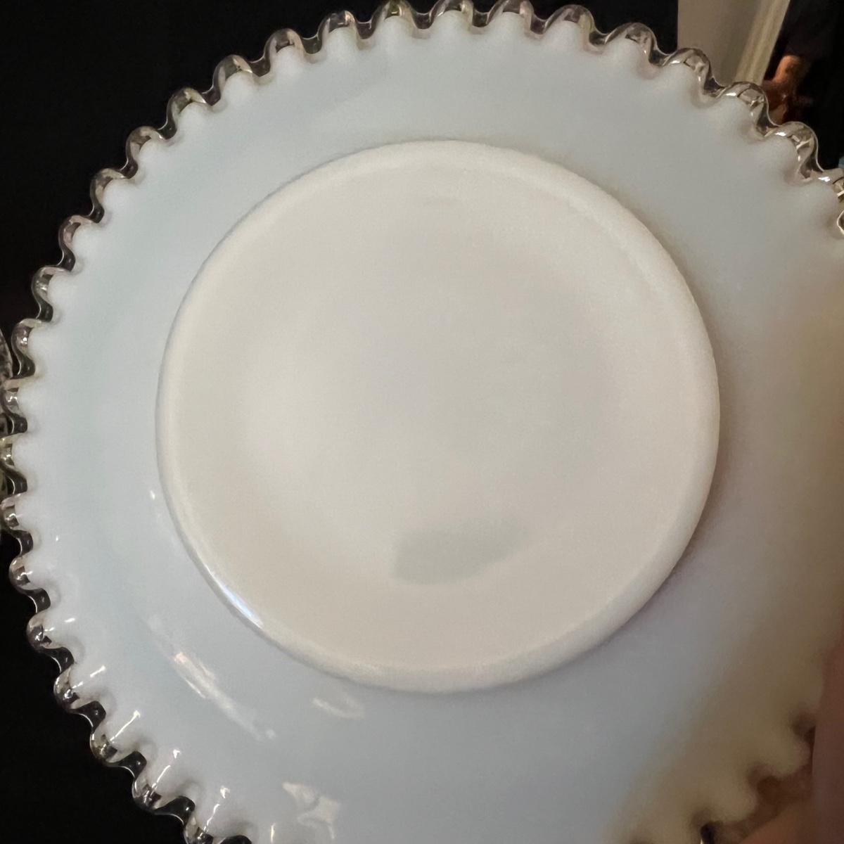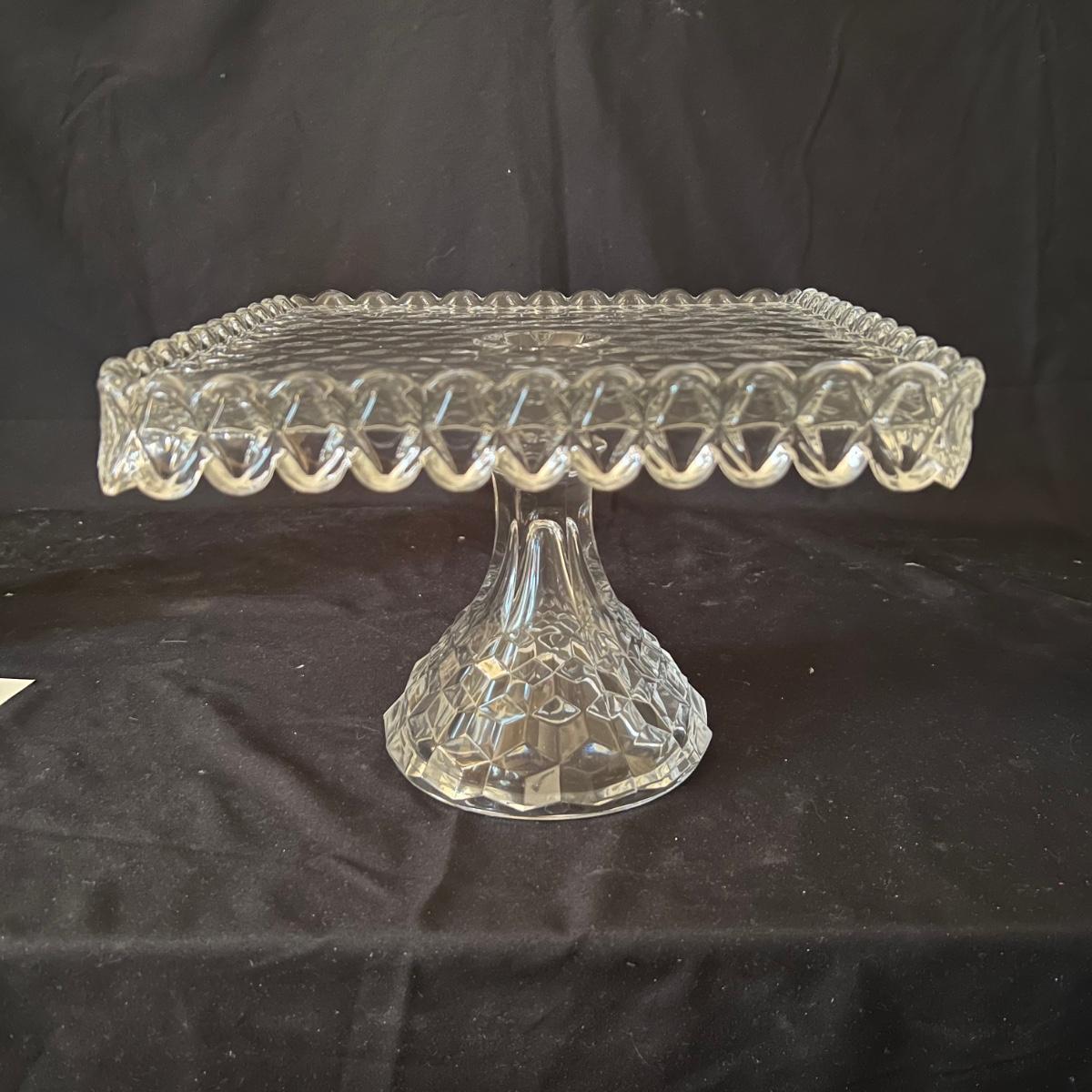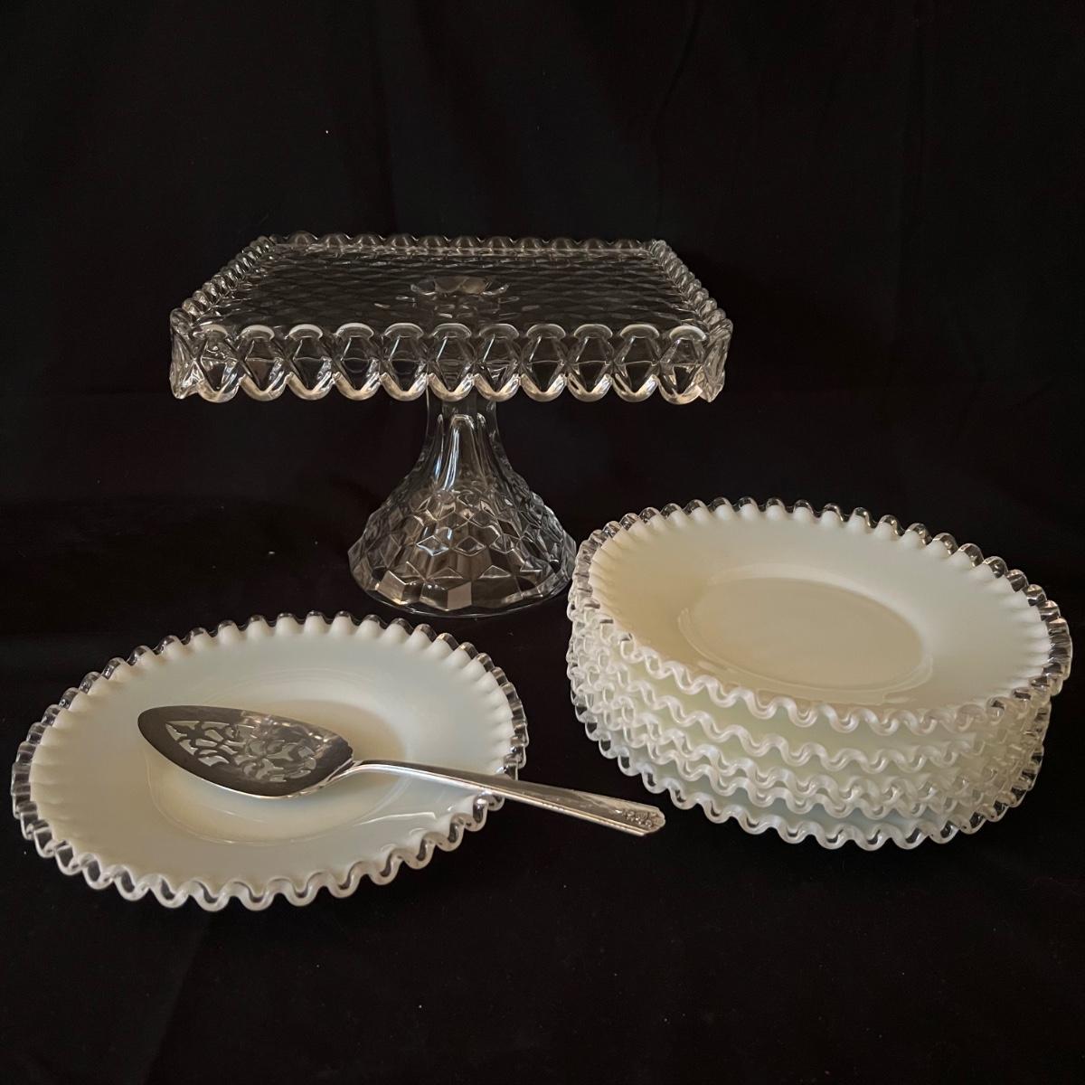 Fostoria Glass Pedestal Stand Plus White Glass Dessert Plates (K-RG)