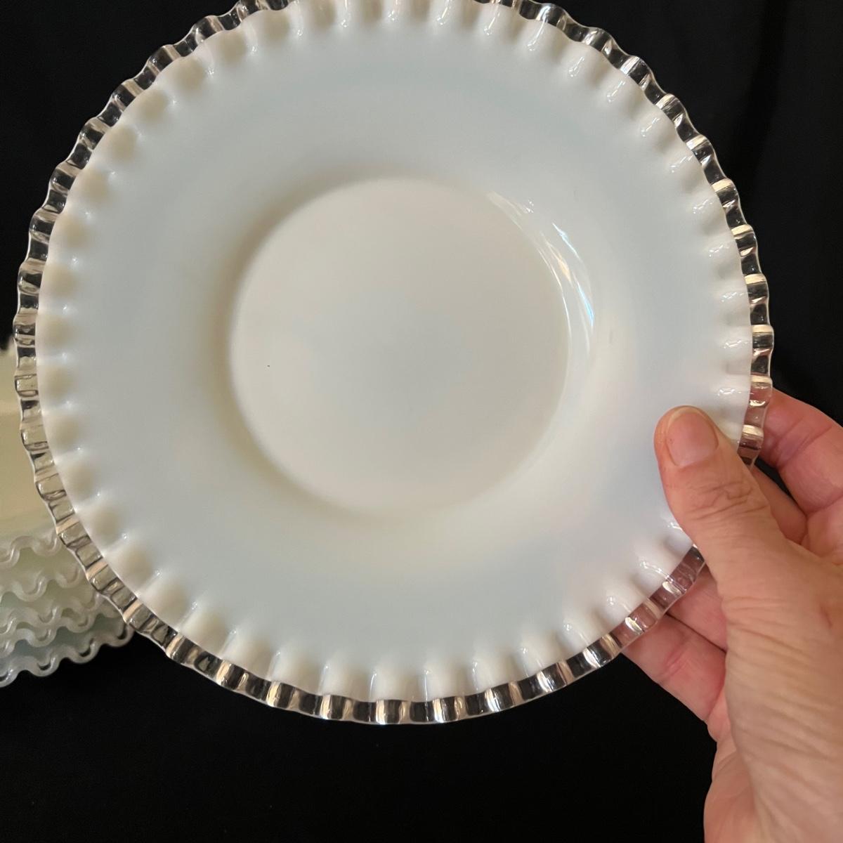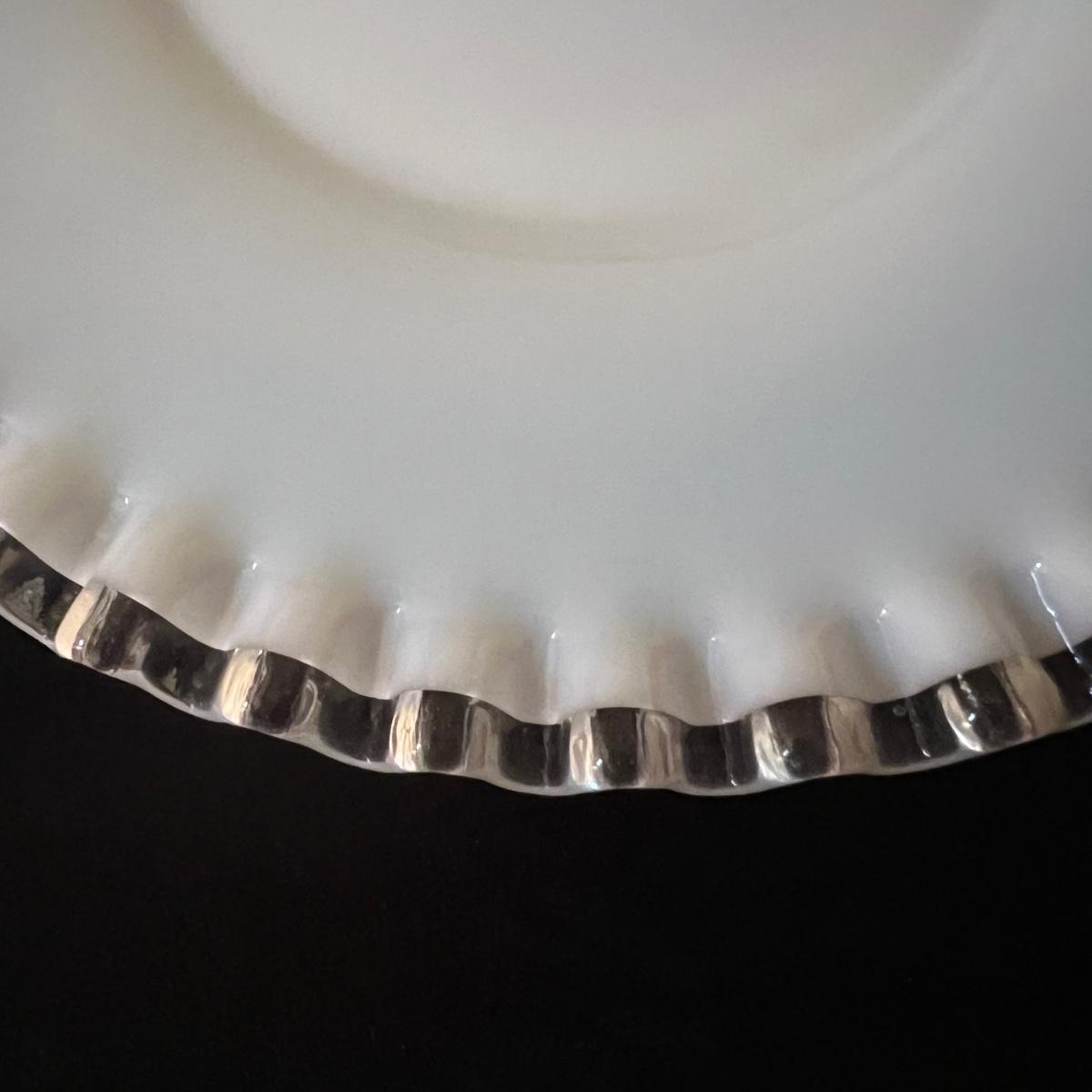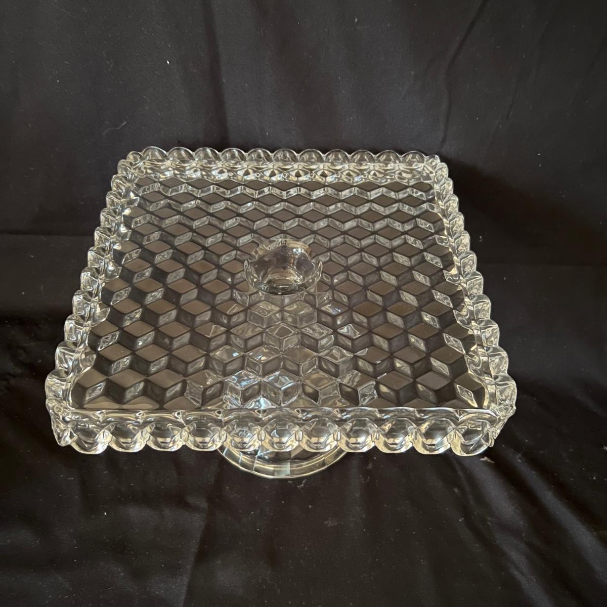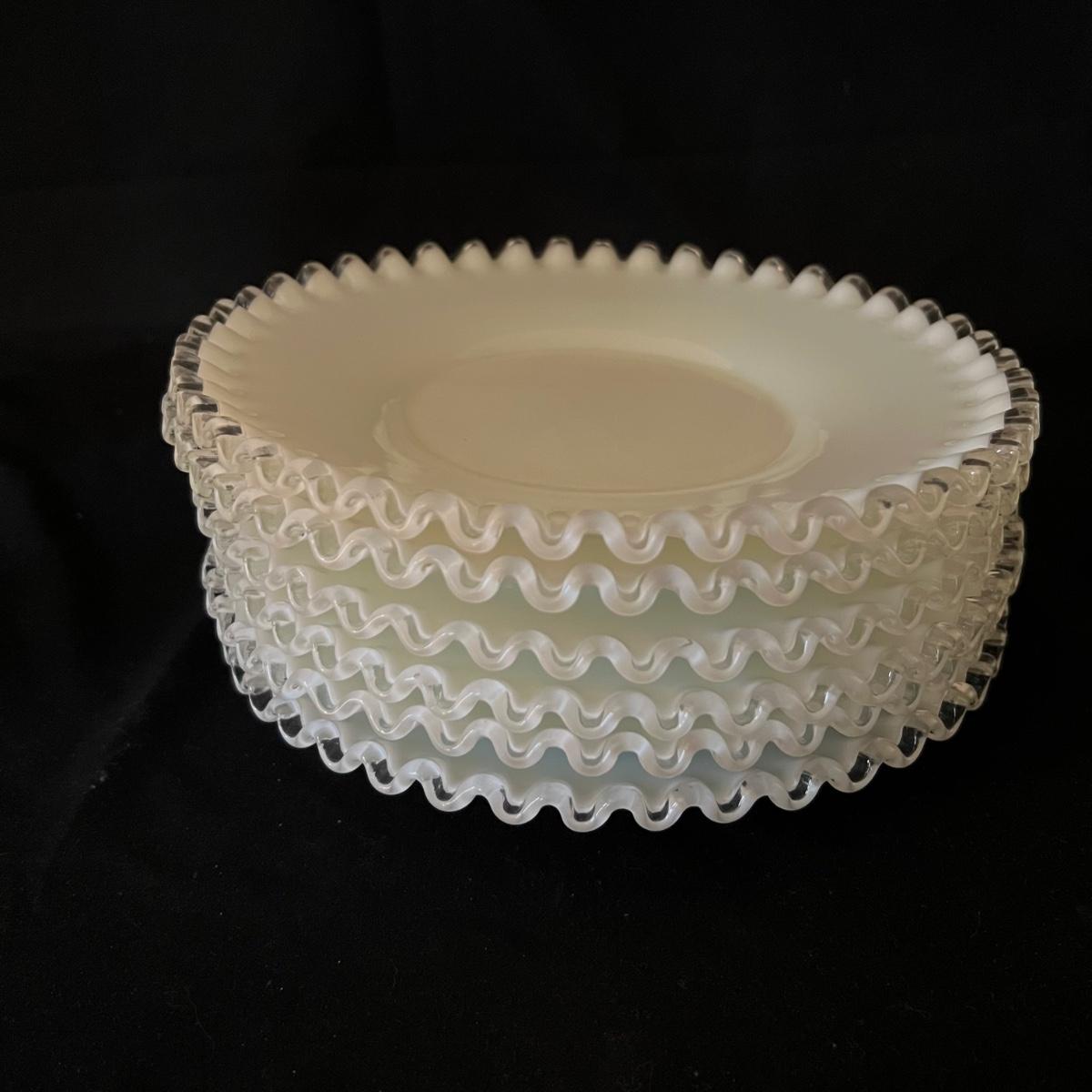 Fostoria Glass Pedestal Stand Plus White Glass Dessert Plates (K-RG)