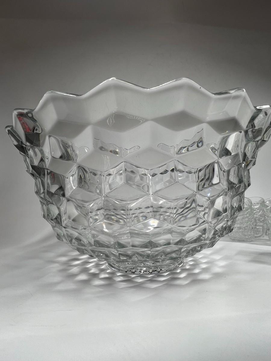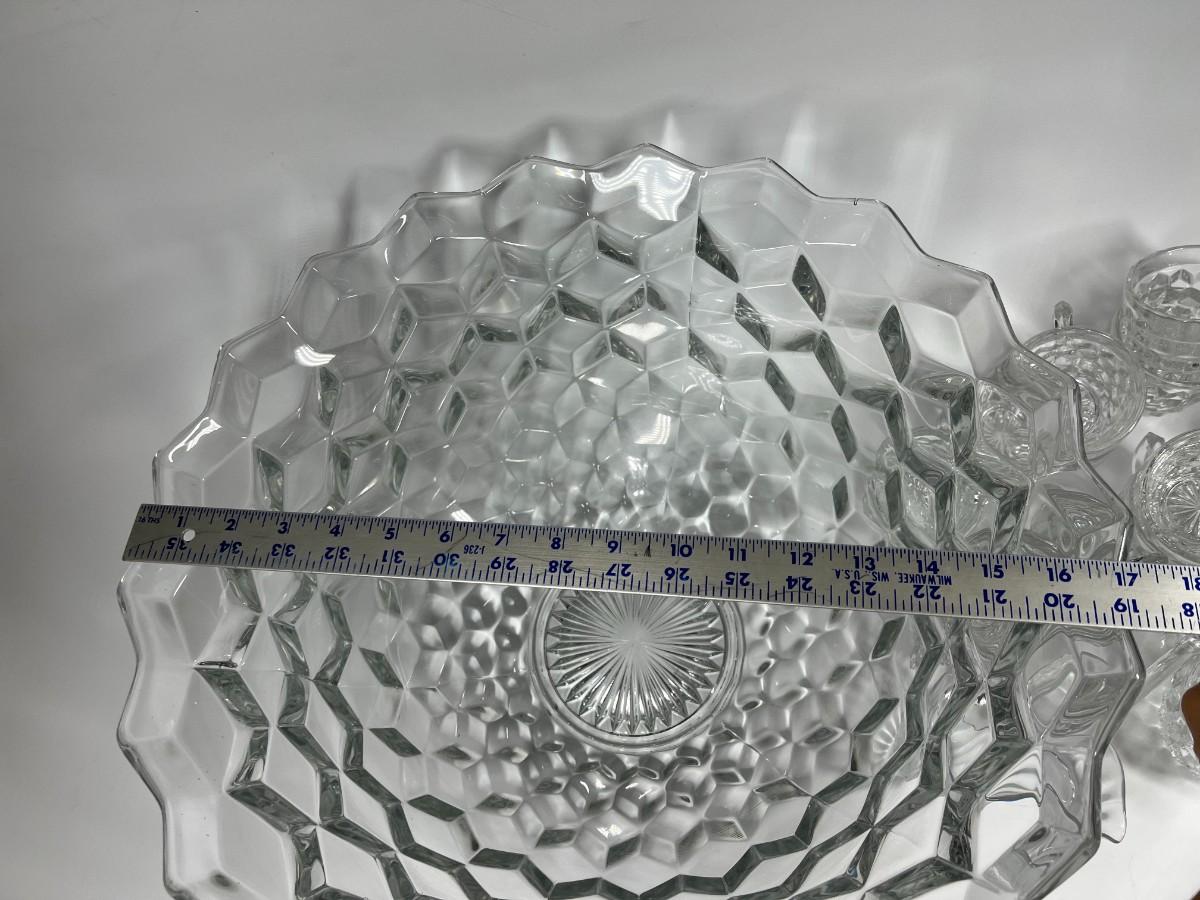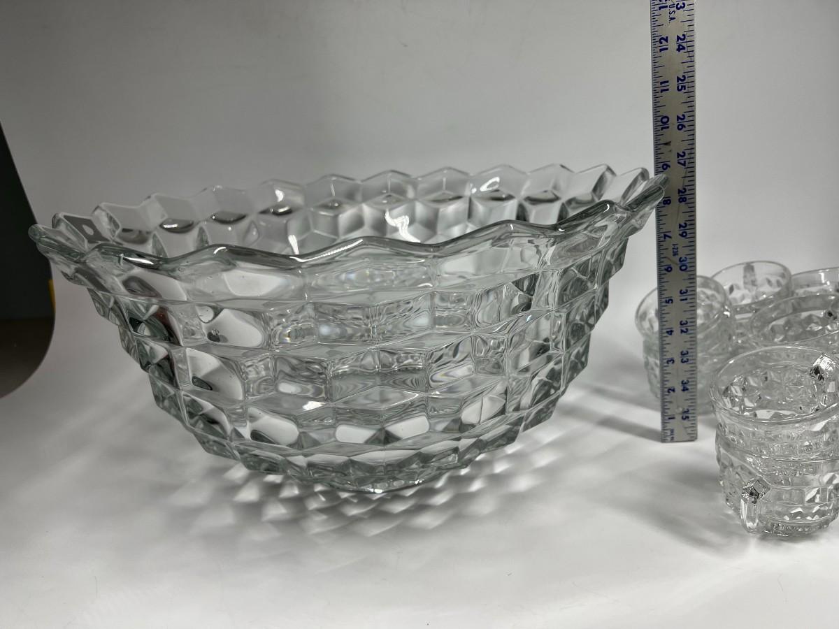 Fostoria Heavy Crystal Glass Punch Bowl Set with Cups & Serving Ladle