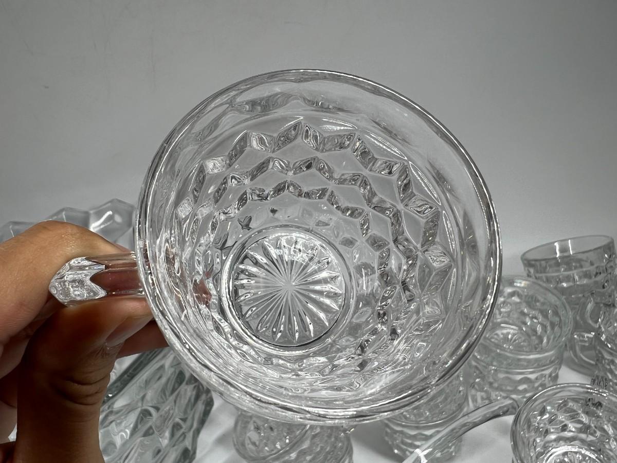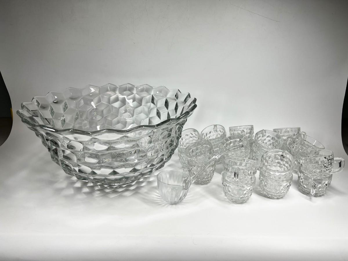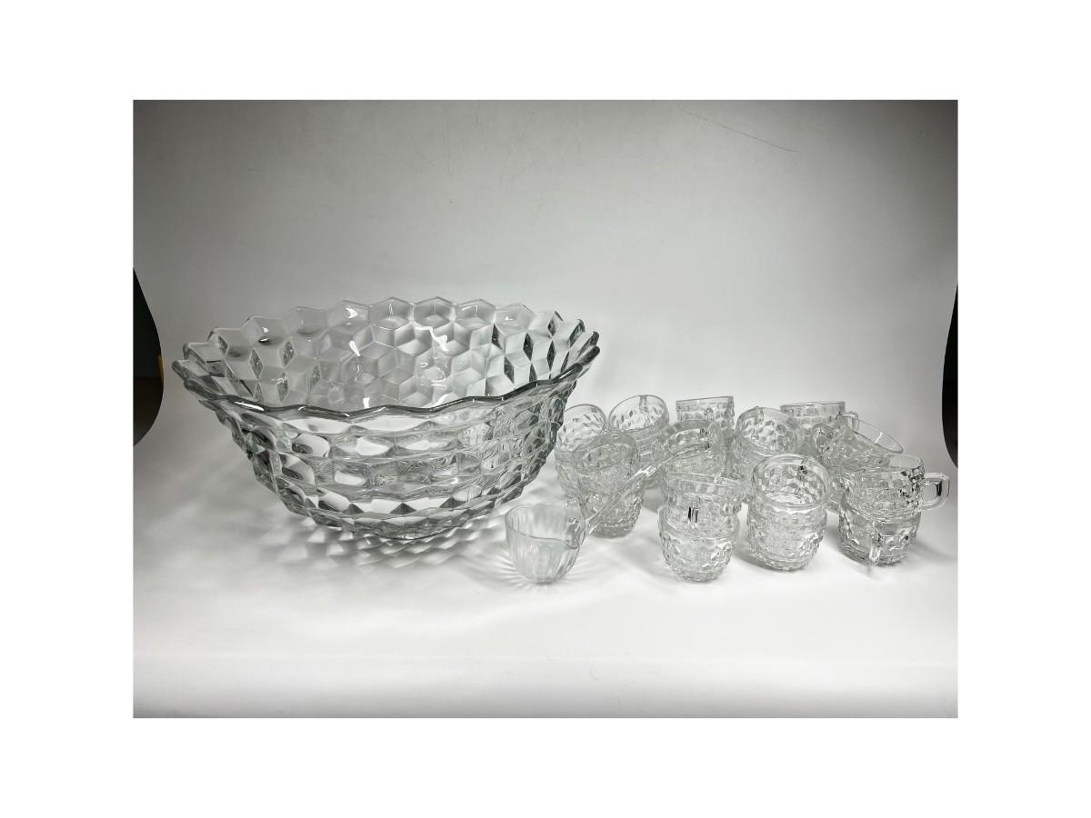 Fostoria Heavy Crystal Glass Punch Bowl Set with Cups & Serving Ladle