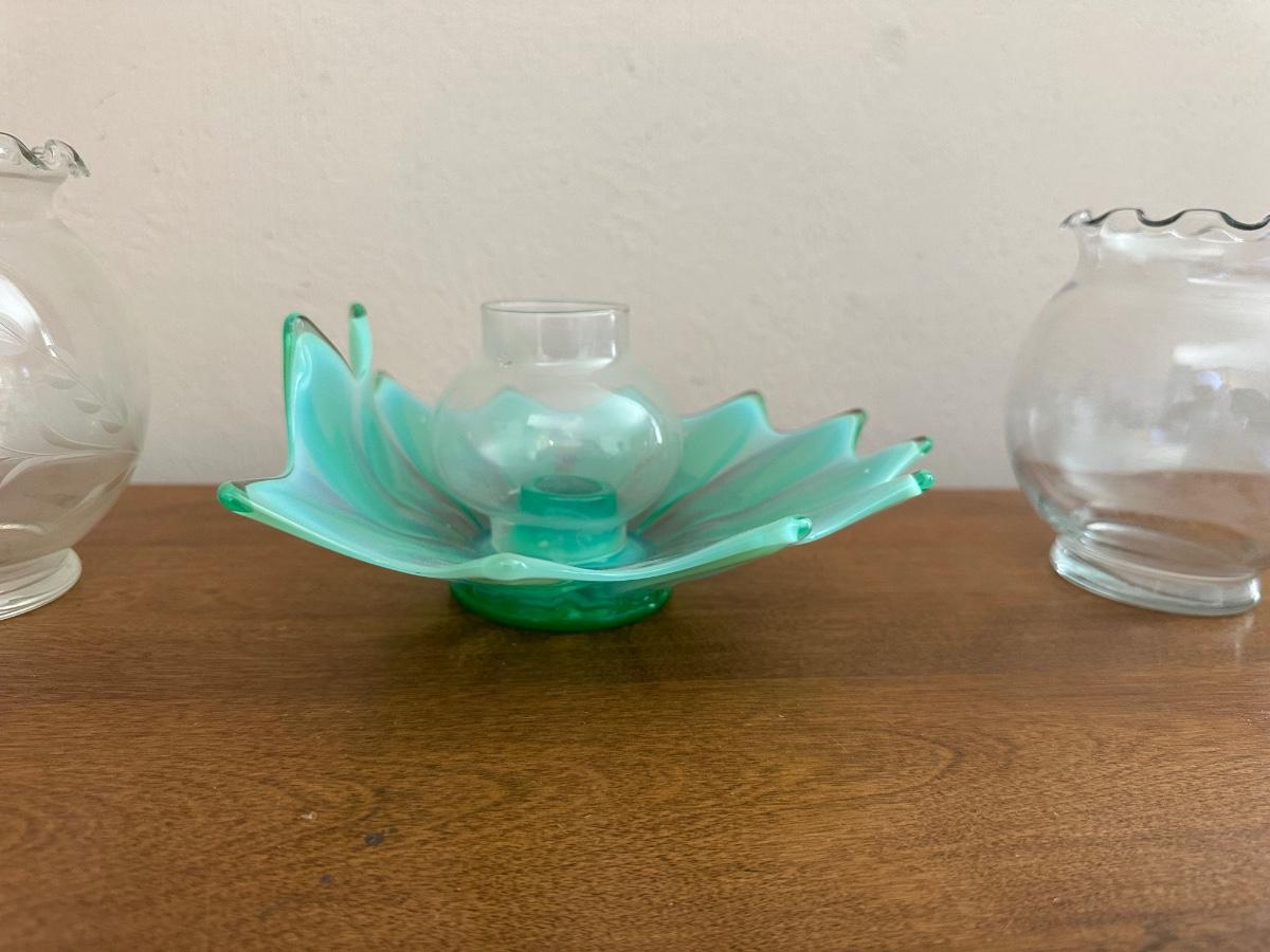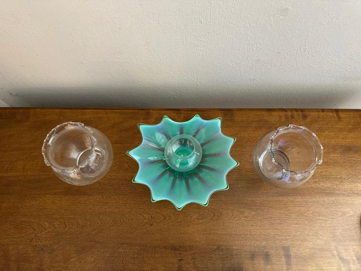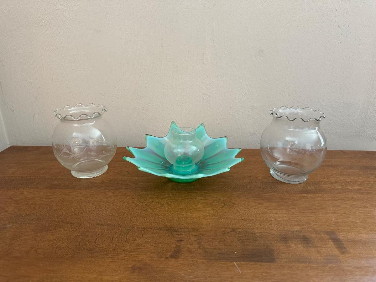FOSTORIA HEIRLOOM GREEN BOWL AND 2 ROSE BOWLS
