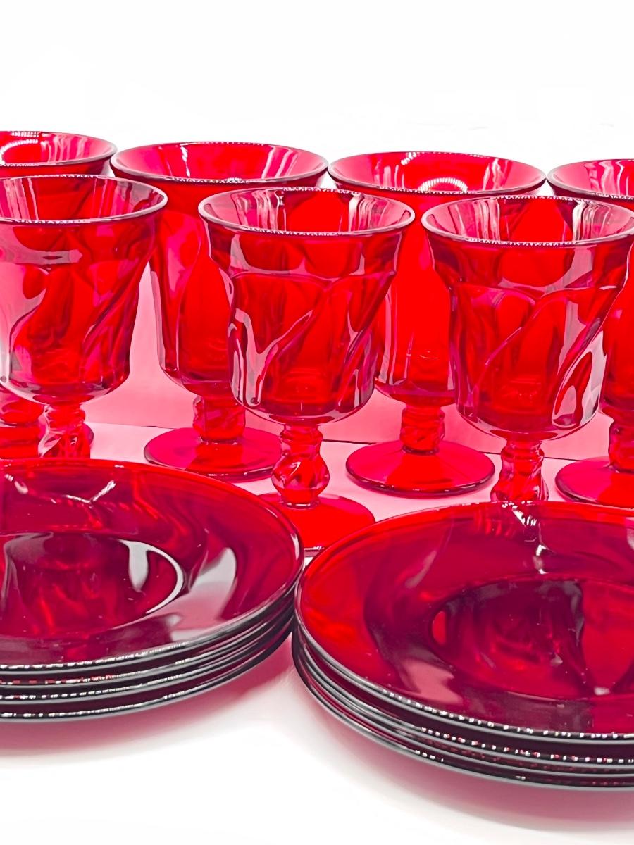 16 Pieces See photos for details ~ Ice Tea / Water goblets ~ * Not 100% sure if the red plates are fostoria