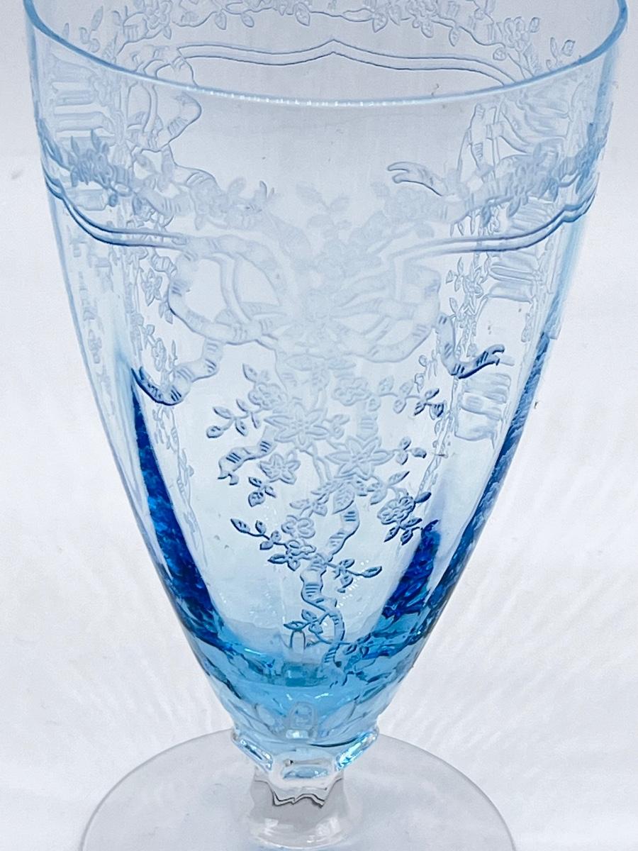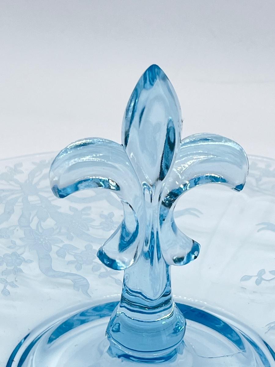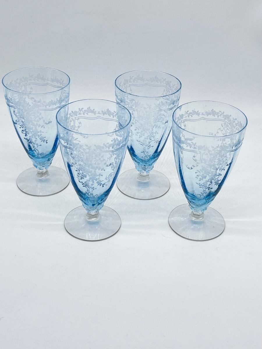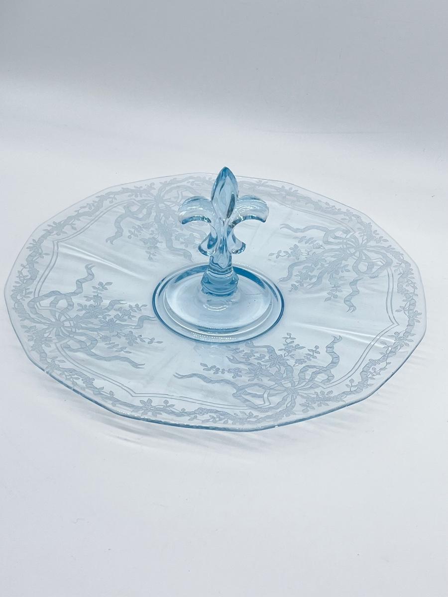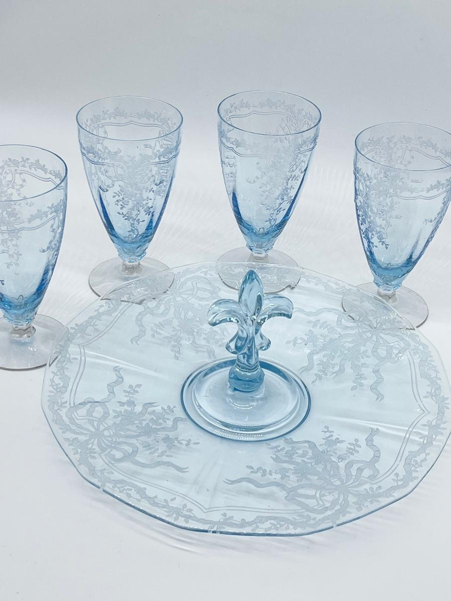 FOSTORIA ~ June Blue ~ Center Handle Tray & Four (4) Parfait Glasses